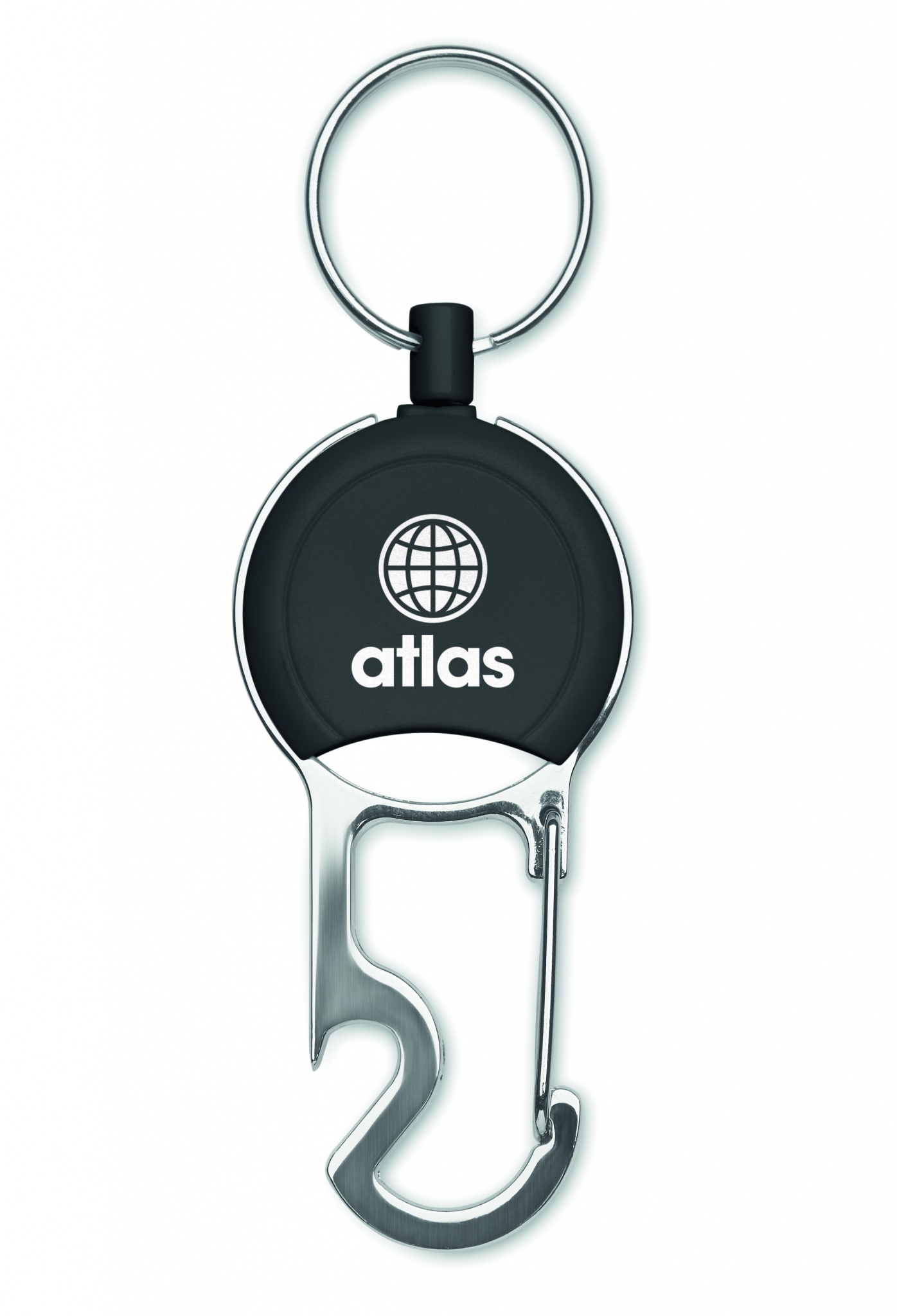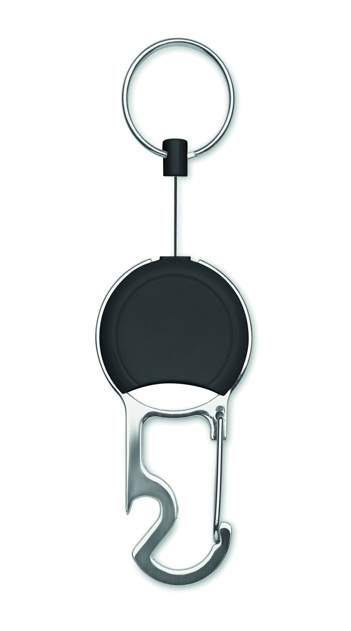Выдвижной держатель для бейджей из пластика с клипом, брелком для ключей и открывалкой для бутылок.