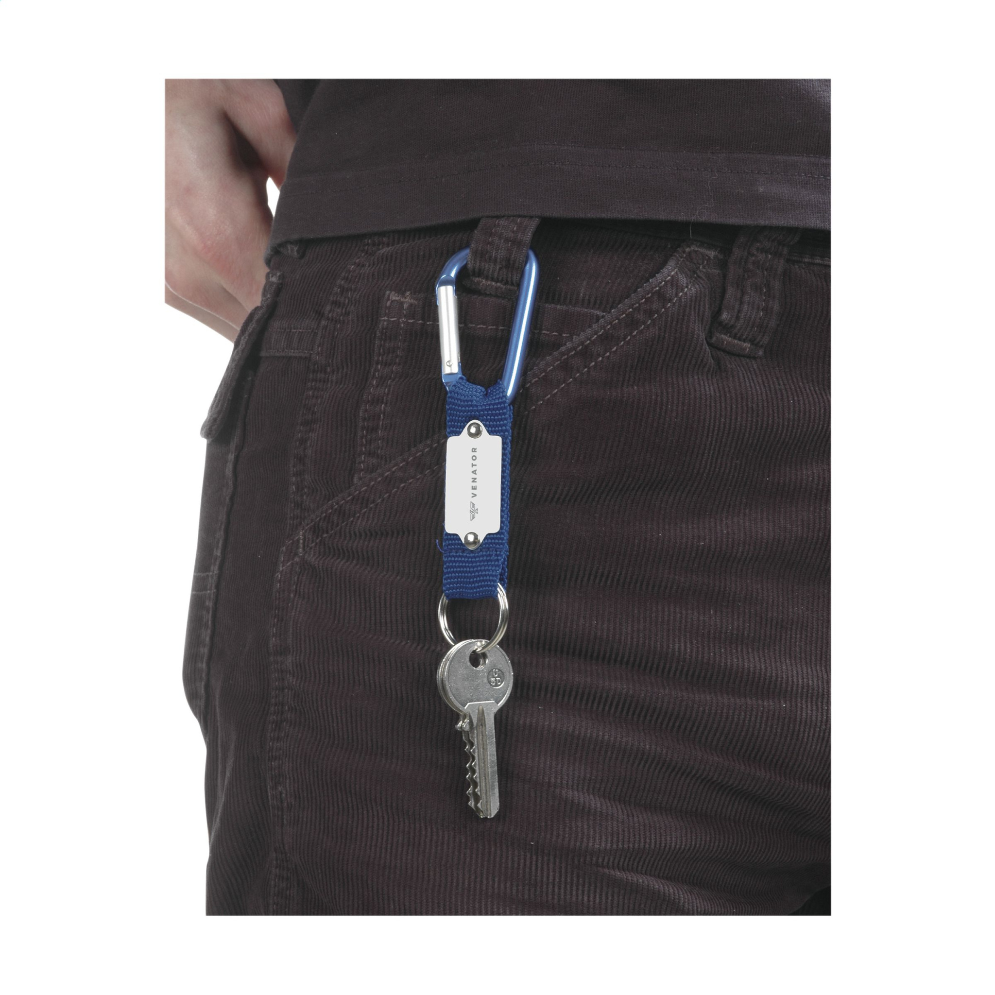 Карабин с плетеным нейлоновым ремешком и прочным кольцом для ключей.