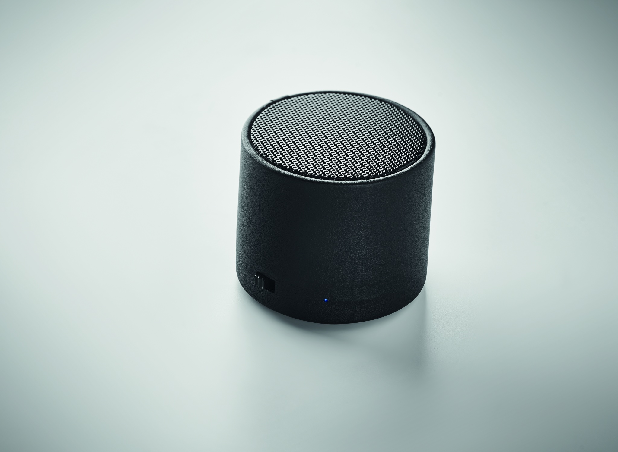 Беспроводная колонка 5.0 с корпусом из пластика и полиуретана. На 58% состоит из переработанного сырья (40% переработанного полиэстера и 18% переработанного полиуретана). Светодиодная индикация. Выходные данные: 3 Вт, 3 Ом и 5 В. Время воспроизведения около 3 ч.
