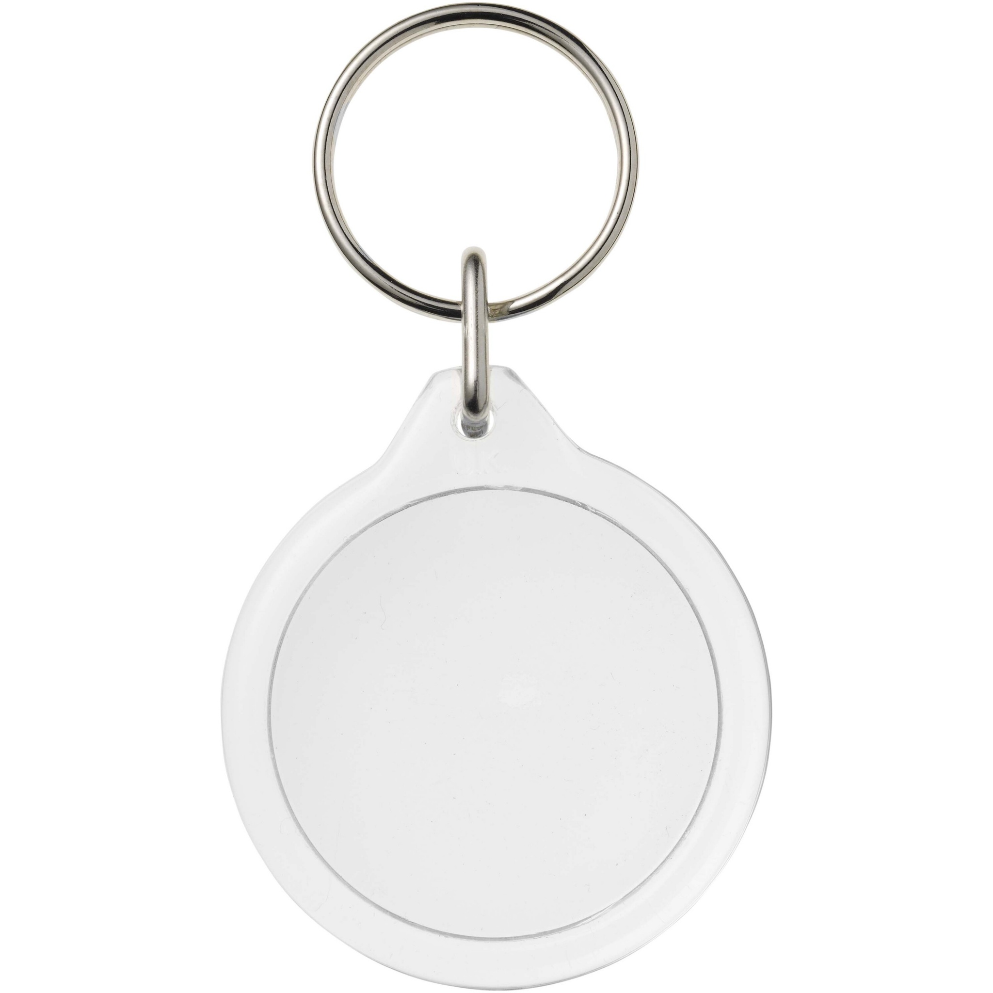 Прозрачный брелок I7 с металлическим разъемным кольцом. Металлическая петля для крепления кольца представляет собой плоский профиль, что делает его идеальным для пересылки. Диаметр печатной вставки: 3,3 см.