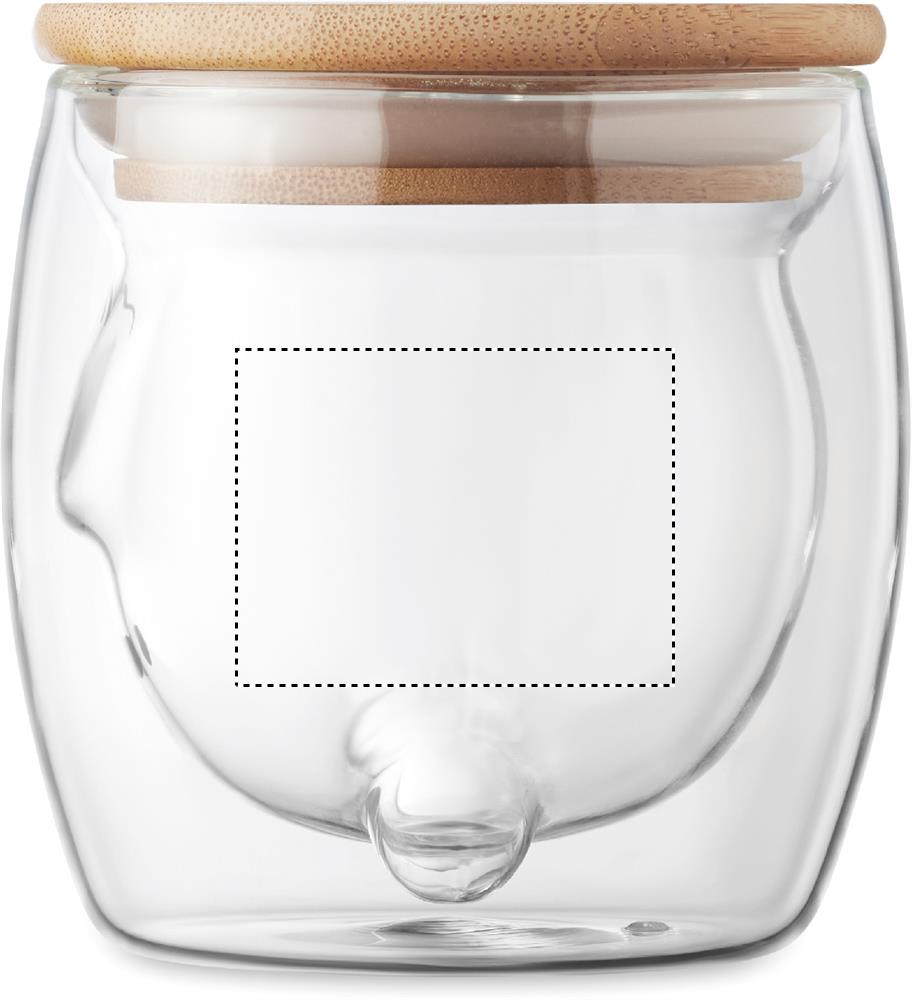 Кружка с двойными стенками из боросиликатного стекла с забавной медвежьей мордочкой и бамбуковой крышкой. Объем: 260 мл.