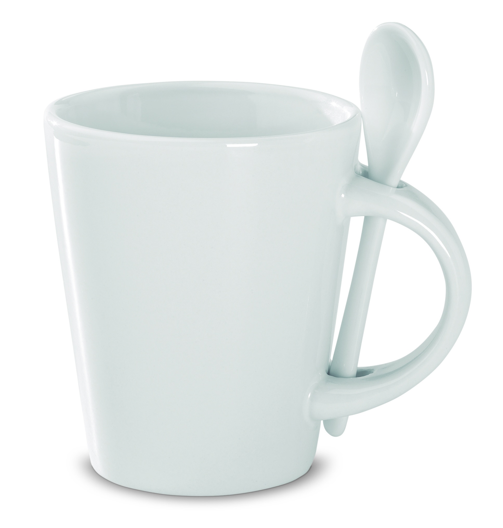 Керамическая кружка с ложкой объемом 300 мл со специальным покрытием для сублимационной печати.