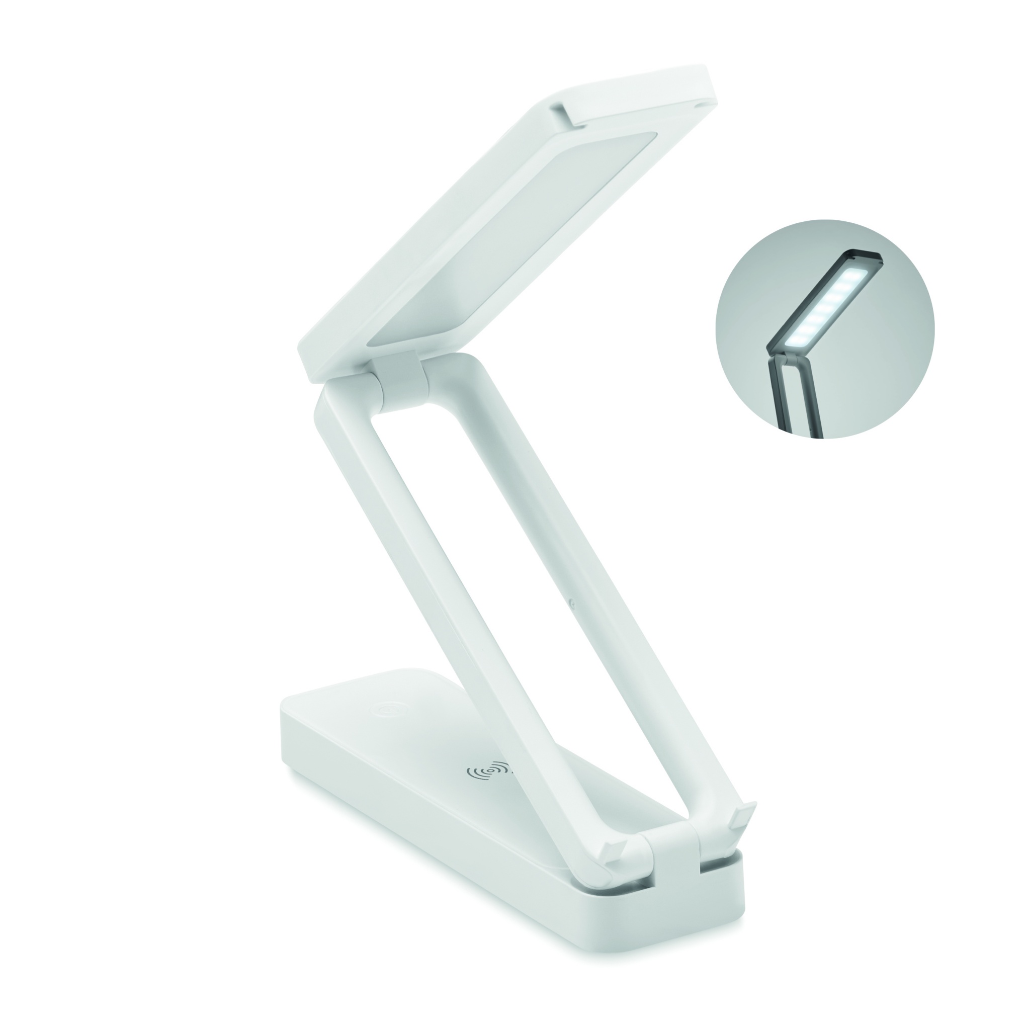 Складная настольная лампа из пластика ABS с 14 светодиодными огнями, имеющая 3 настройки яркости и беспроводное зарядное устройство мощностью 10 Вт. Выход: DC 9V/1.1A (10 Вт) для быстрой зарядки. Совместимость с последними моделями Androids, iPhone® 8 и новее.