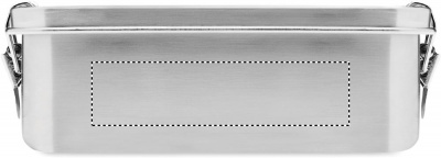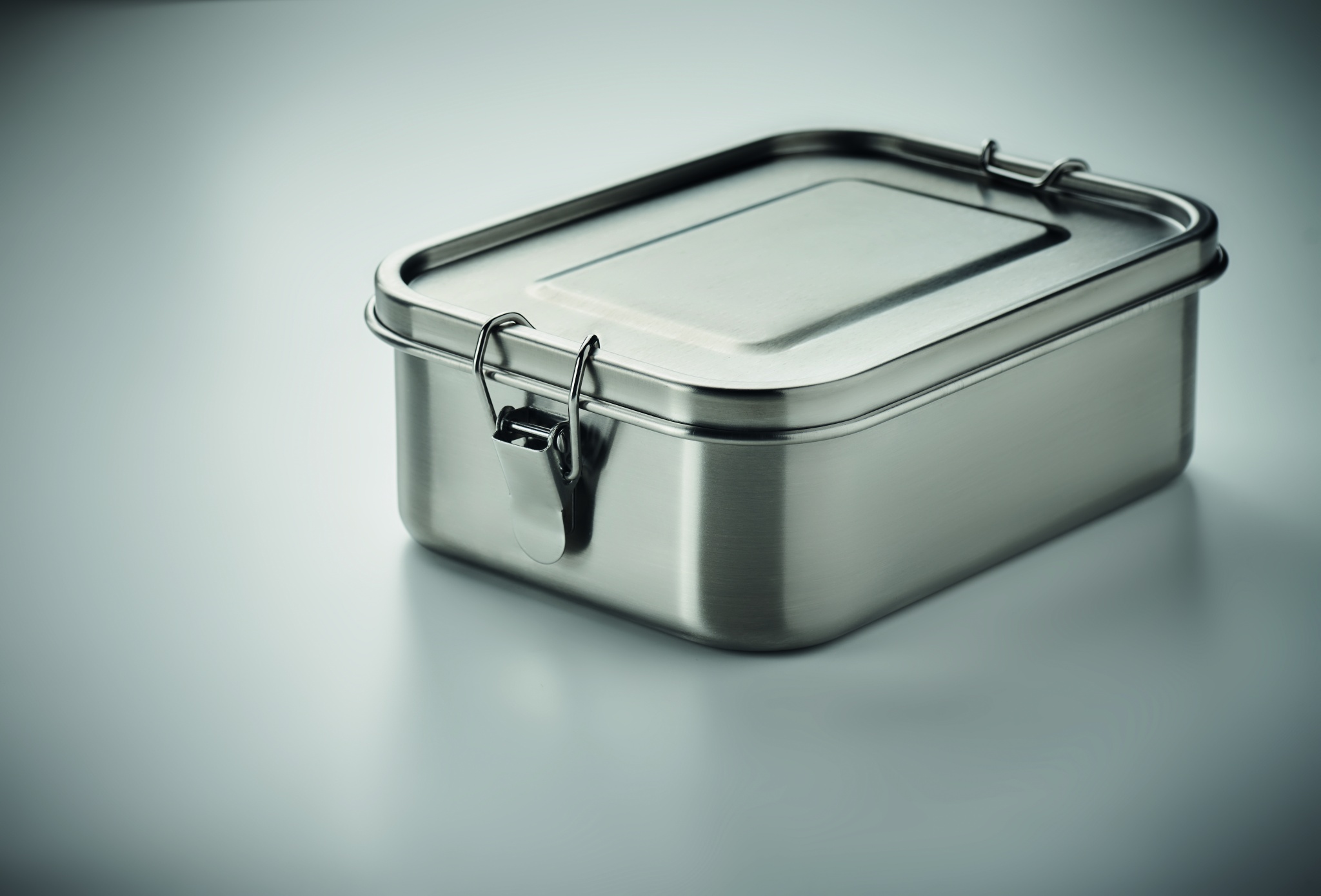 Ланч-бокс из нержавеющей стали с прочными и надежными боковыми застежками. Включает внутренний разделитель. Вместимость: 1200 мл.