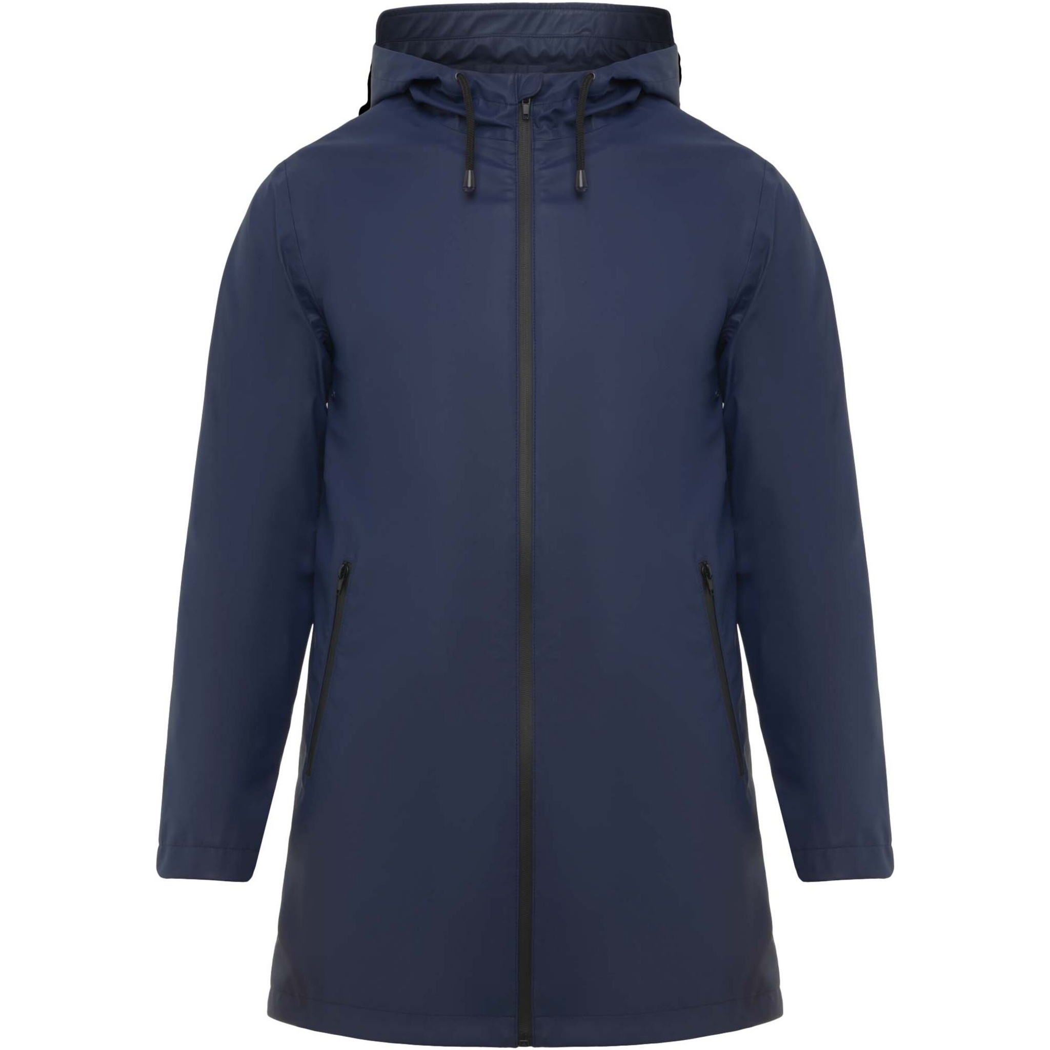 Водонепроницаемый плащ. Капюшон с козырьком. Молнии и швы с термической проклейкой. Контрастные детали черного цвета. Два боковых кармана на молнии. Разрез сзади снизу. Съемная этикетка. Водонепроницаемый.