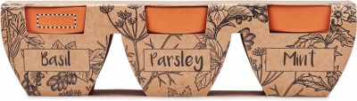 Набор из 3 глиняных терракотовых горшков, включающих 3 сорта семян трав: мяты, петрушки и базилика.