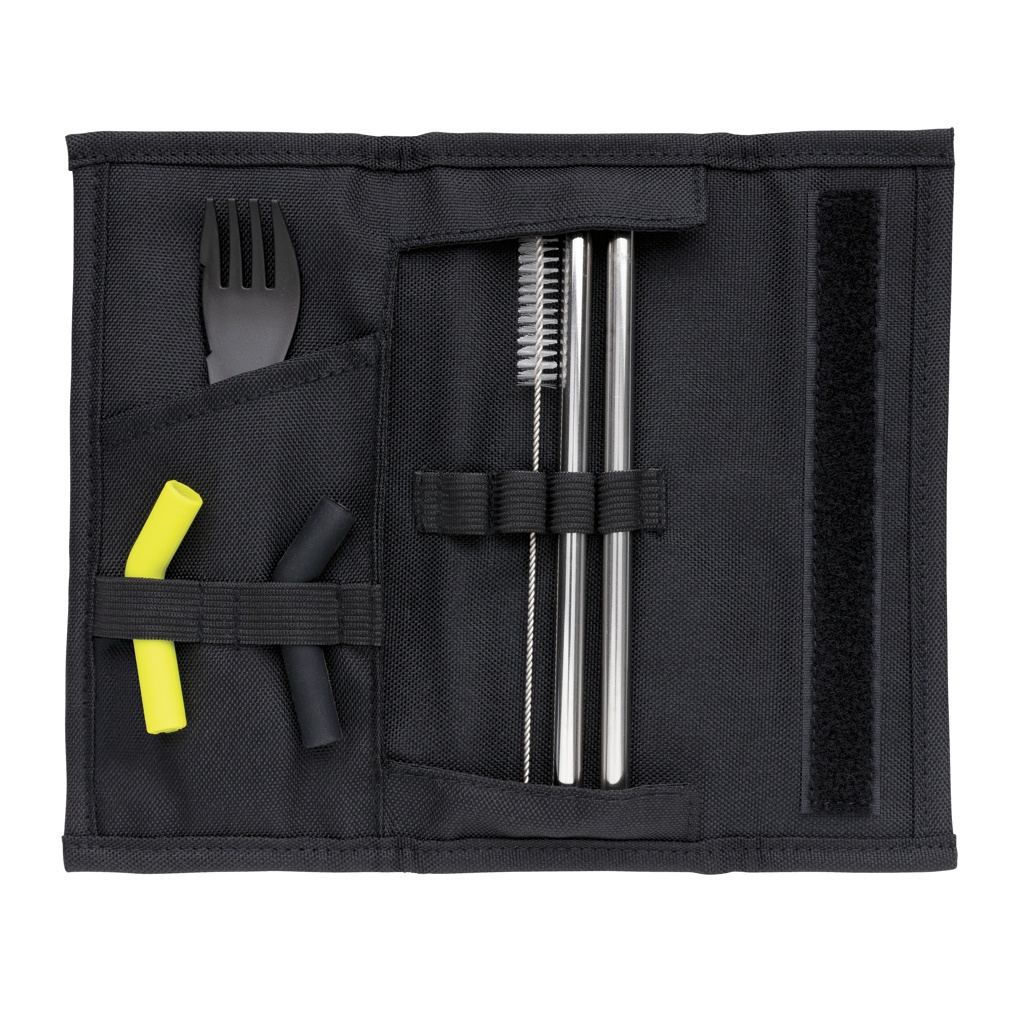 Набор из 2-х трубочек и столовых приборов Tierra в чехле, черный