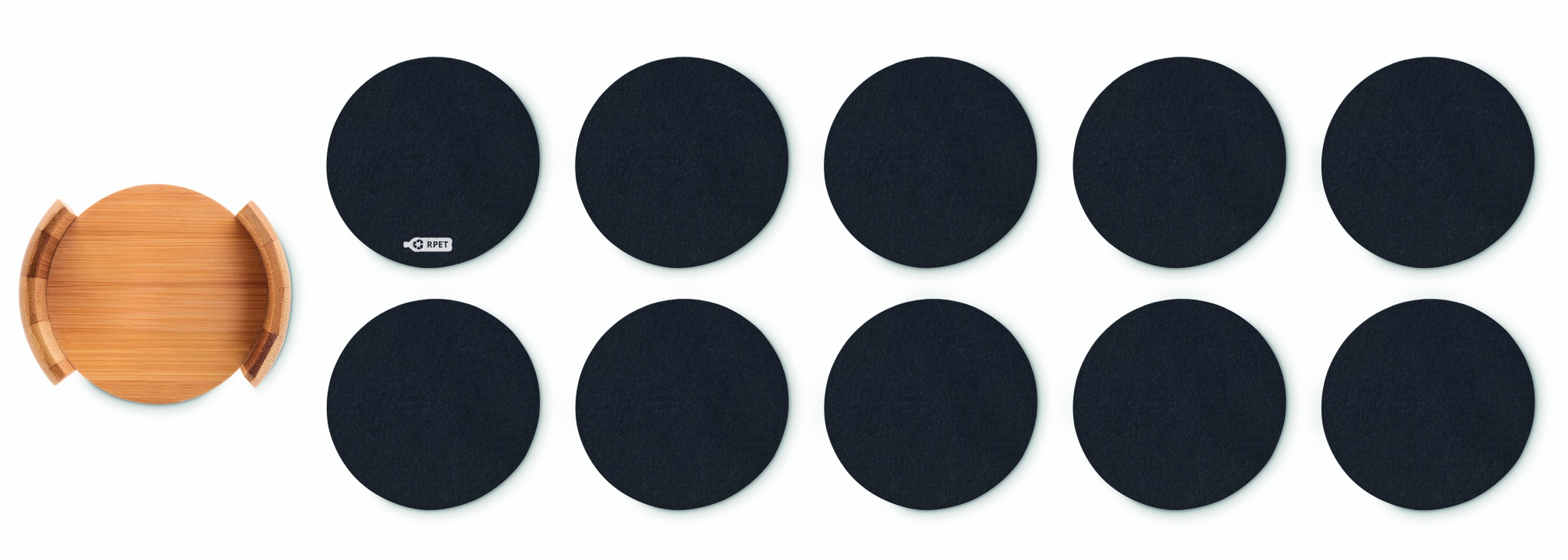 Набор из 10 костеров из переработанного фетра RPET с бамбуковым держателем.