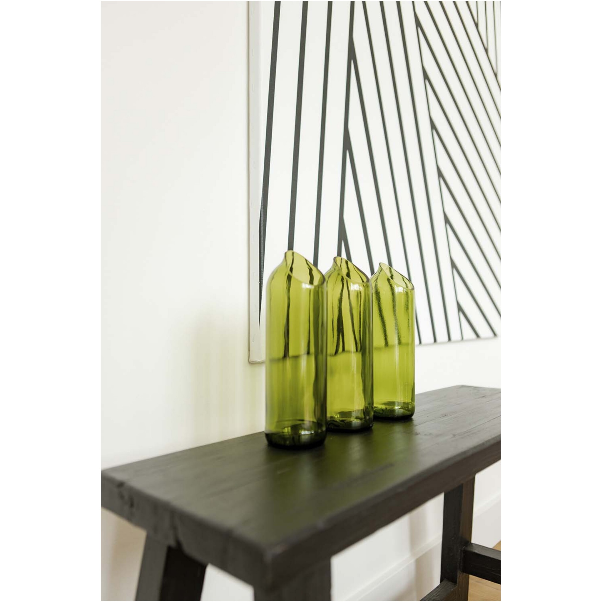 Ваза из переработанных винных бутылок объемом 750 мл. Эта ваза придает простоту и элегантность, а также является стильным аксессуаром для цветов. Поставляется в подарочной коробке.