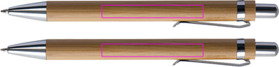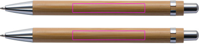 Письменный набор из бамбука, включающий синюю шариковую ручку и механический карандаш в картонном футляре. Мы гравируем ваш логотип под зажимом на обеих ручках.