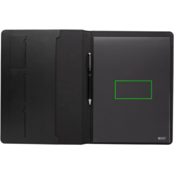 Изготовленный из 100% переработанного полиэстера AWARE 300D и сертифицированного RCS переработанного полиуретана, этот портфель сочетает в себе стиль и низкое воздействие. Он имеет отделения для визитных карточек, держатель для ручки и просторный карман A4. Организуйте свои дела с помощью многоразового блокнота формата A4 (20 страниц, 70 г/м²), изготовленного из кремовой бумаги FSC®. Ощутите изысканность с совестью. Изготовлен из 100% переработанного полиэстера со встроенным маркером AWARE™. Упакован в подарочную коробку FSC®.