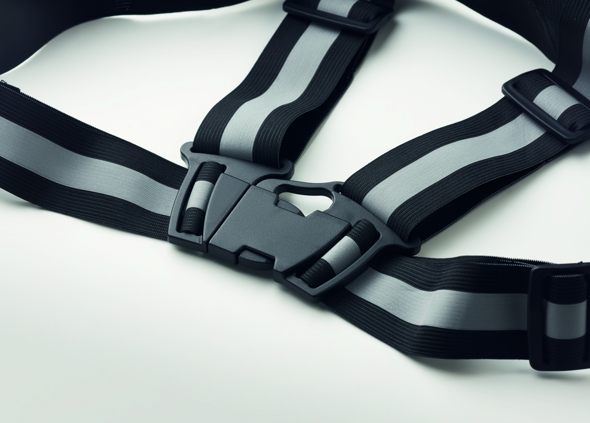 Яркий регулируемый светоотражающий ремень с серебряными полосками. Использовать только для рекламных целей.