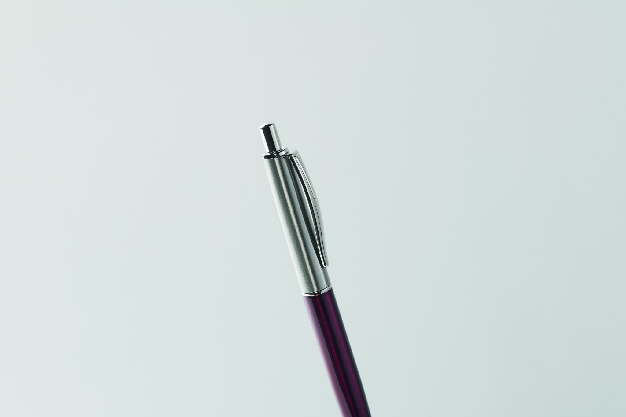 Push button ball pen in recycled stainless steel barrel. Blue ink. Presented in gift box.