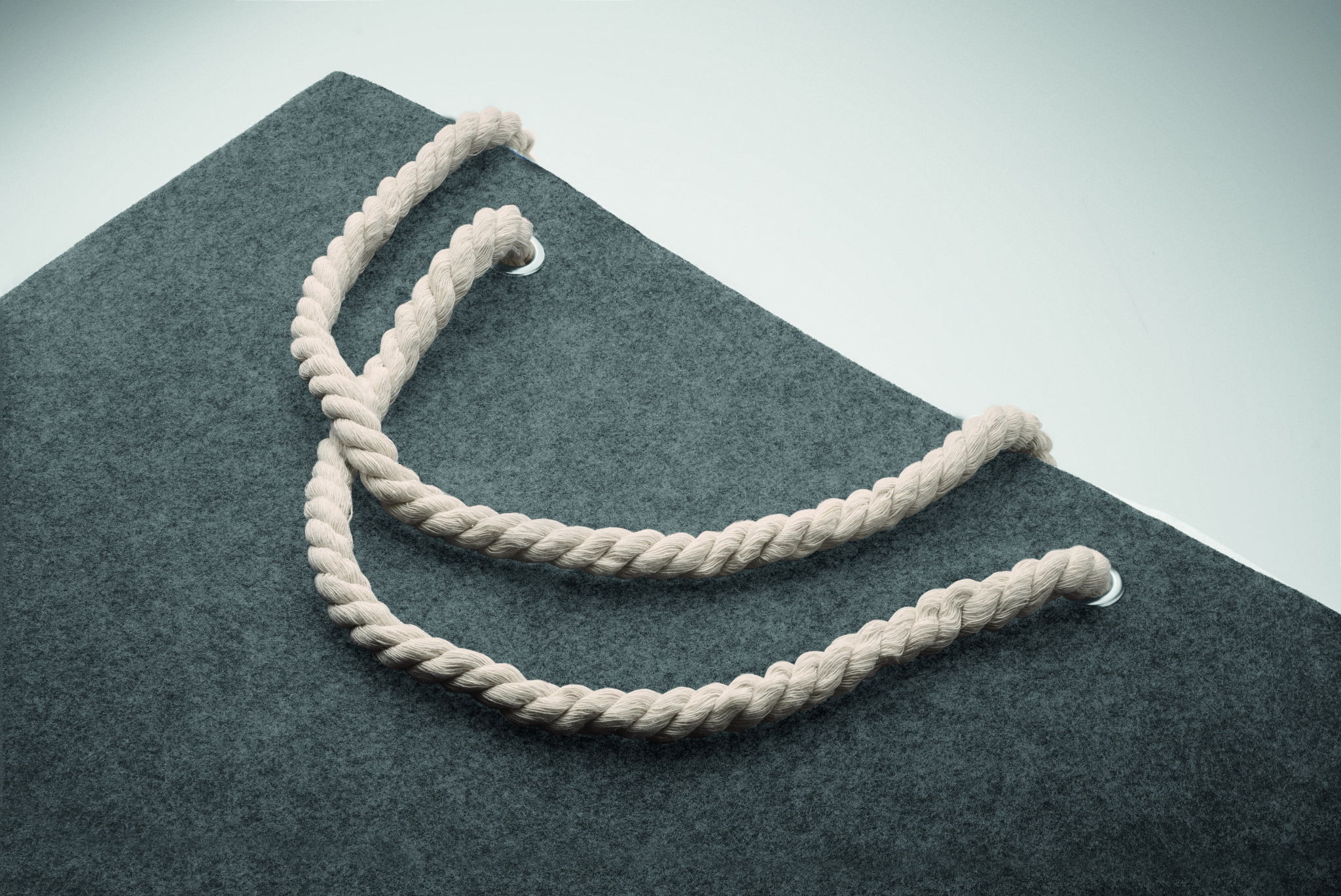 RPET felt beach bag or shopping bag with cord handle. Felt thickness: 2 mm.