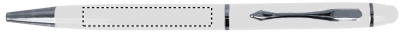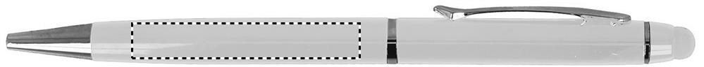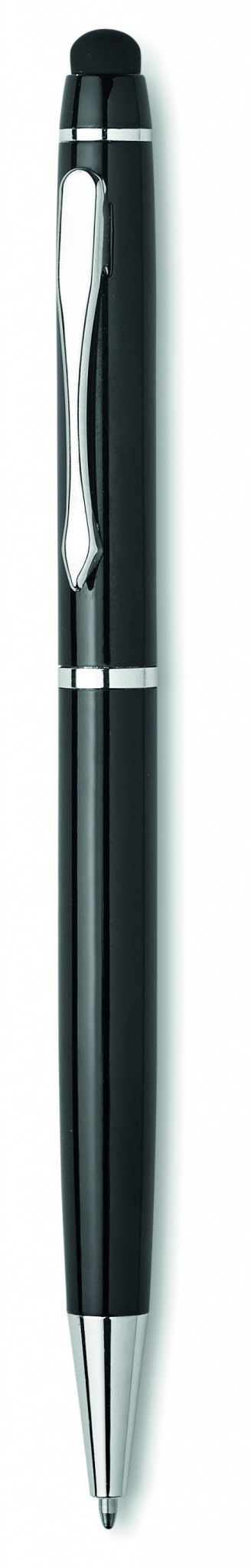 Алюминиевая шариковая ручка с поворотным механизмом и стилусом. Синие чернила. Картонная коробка.