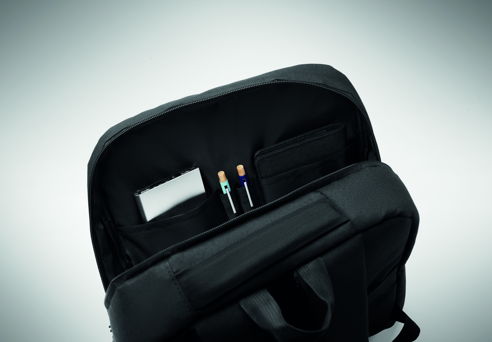 Рюкзак из 600D RPET полиэстера с подкладкой из 210D и возможностью индивидуальной печати., Черный