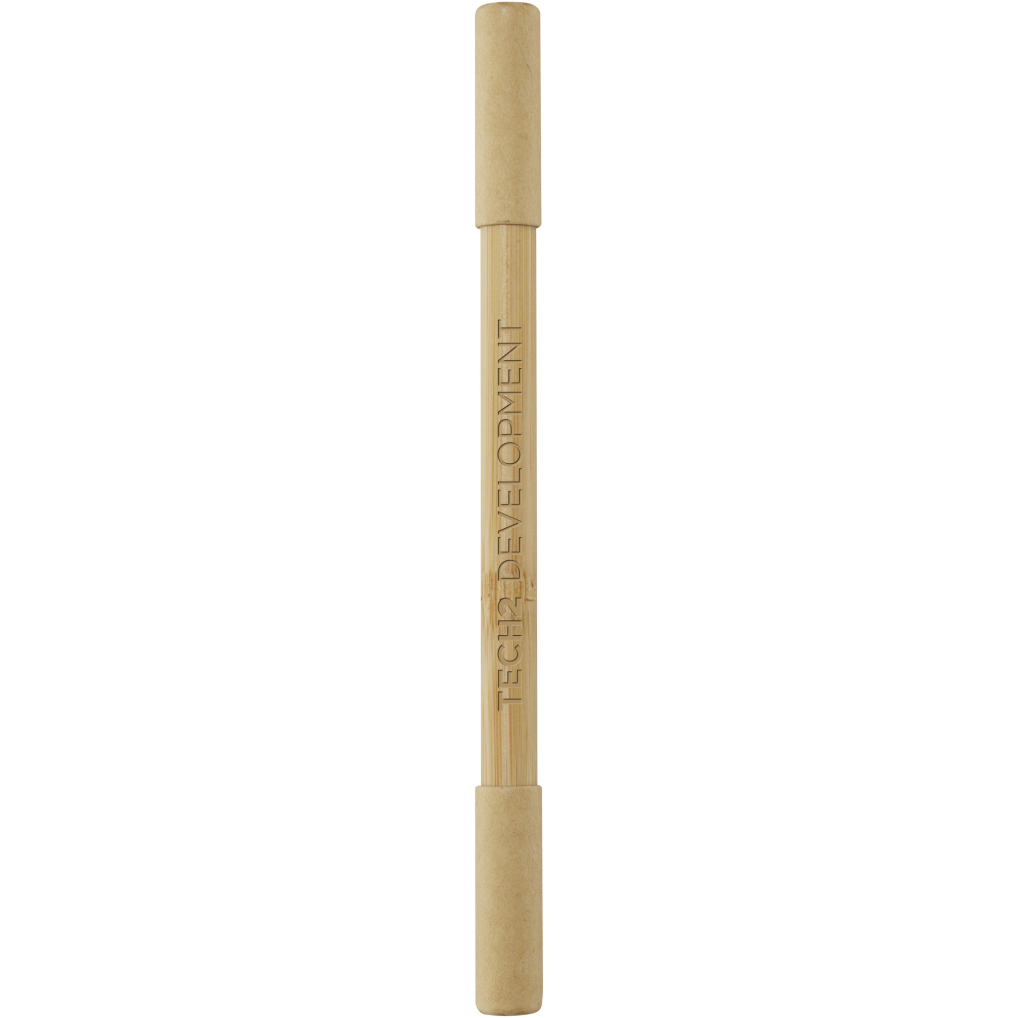 Бамбуковая двойная ручка Samambu имеет две головки: 1 шариковая ручка и 1 бесчернильная ручка. Сторона без чернил не требует чернильных картриджей или заправки. Черный графитовый наконечник ручки предназначен для того, чтобы оставлять видимые следы при контакте с поверхностью для записи. Выбирая ручку, изготовленную из бамбука, вы приобретаете более экологичный продукт и способствуете использованию возобновляемых материалов. Шариковая ручка имеет синие чернила, размер пера 1,00 мм и длину непрерывной линии 600 метров. Длина непрерывной линии бесчернильной ручки: 1500 метров.