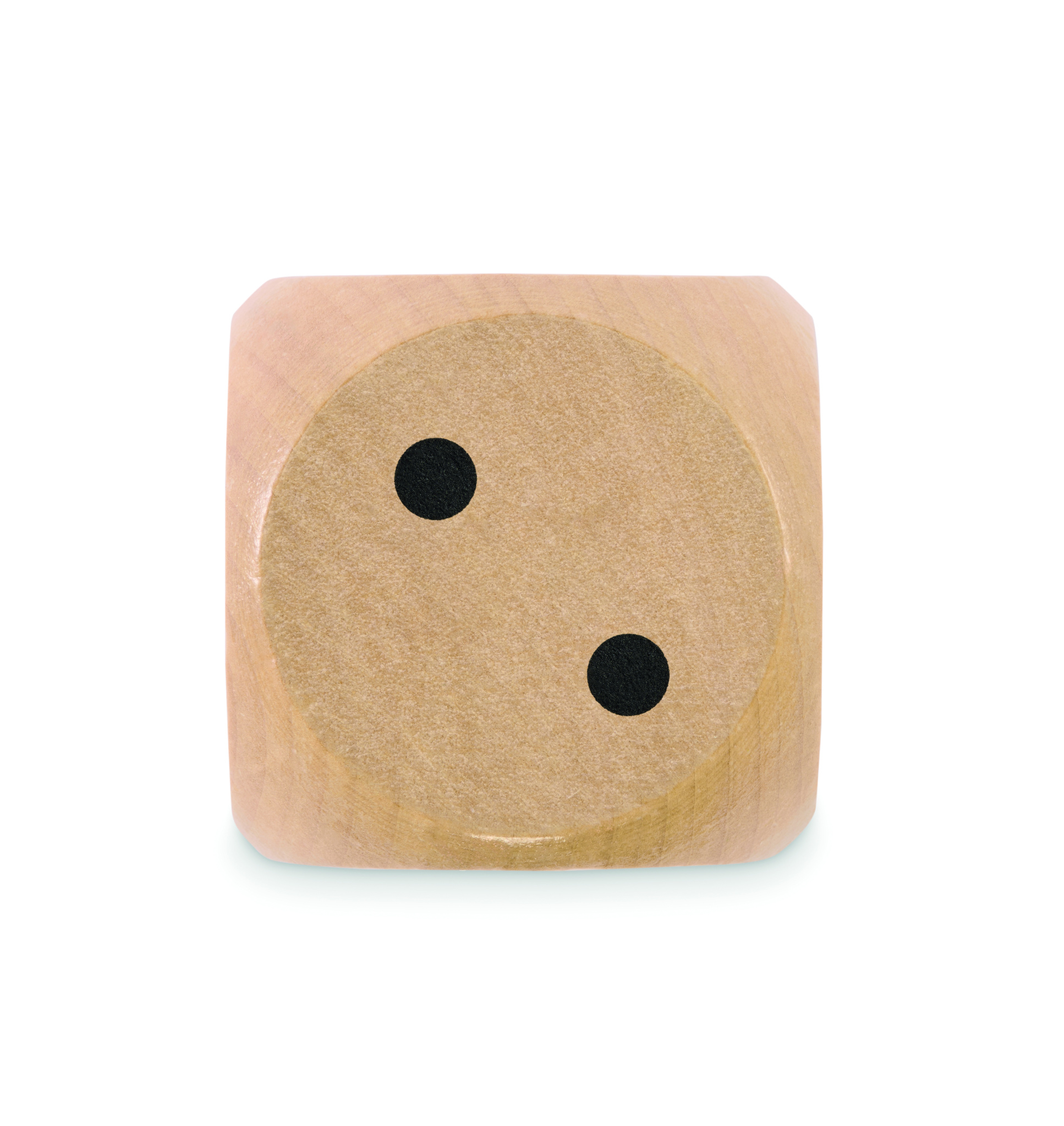 Dice in schima wood. 5cm diameter. This item can only be delivered in multiples of inner packaging being 25 pcs. 1 side reserved for printing. FSC®-certified | FSC 100%, W15.2, FSC-C213206