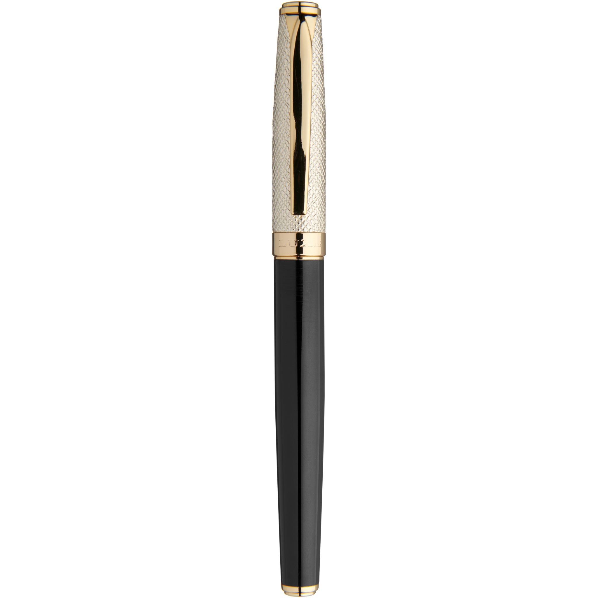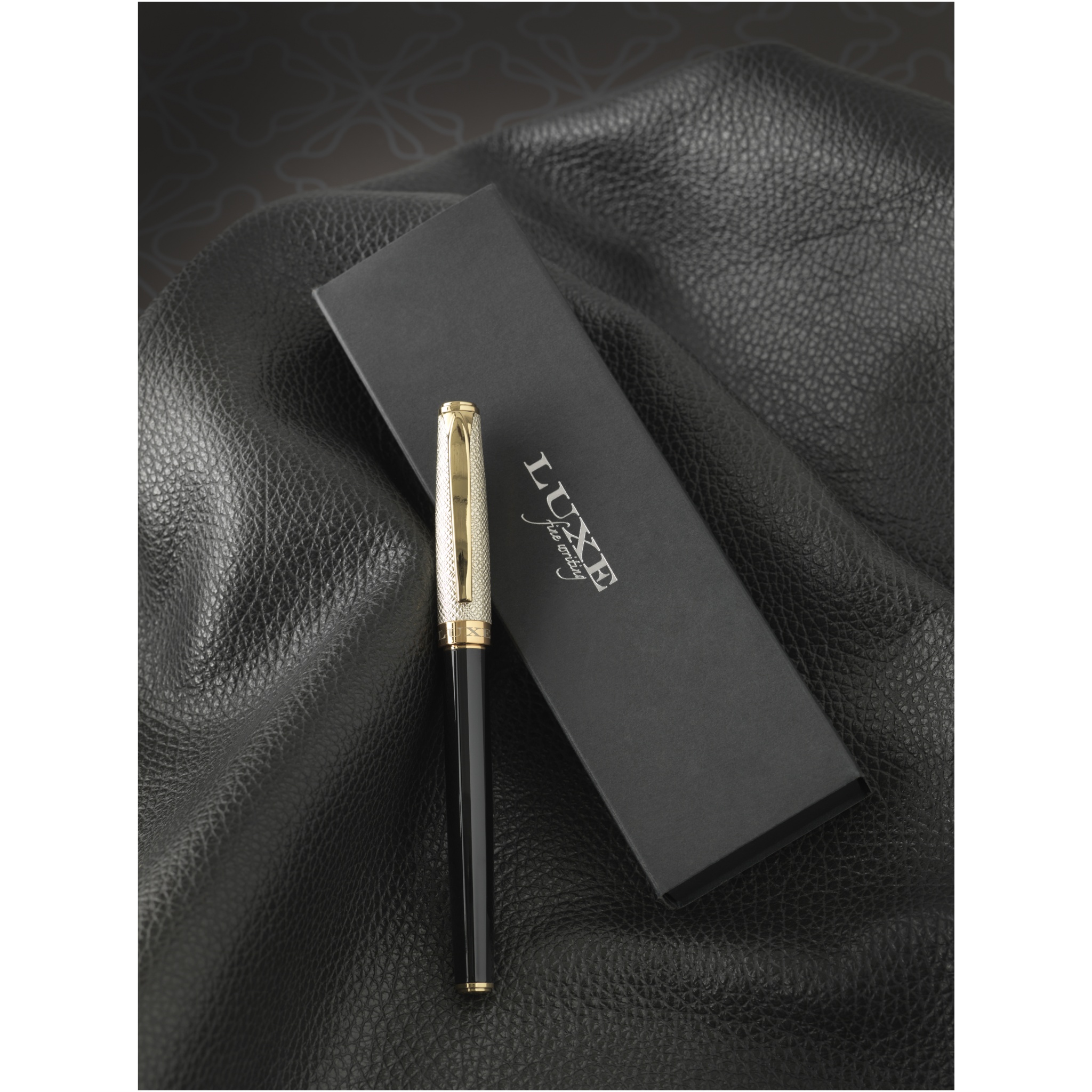 Роскошная ручка-роллер с золотым кожаным колпачком и лакированными золотыми деталями, поставляется в подарочной коробке LUXE. Нижняя часть корпуса выполнена из латуни, покрытой лаком, а верхняя — из латуни и полиуретана. Ручка-роллер: 14 см х 1,15 см, вес: 32 г, длина непрерывной линии: 500 м.