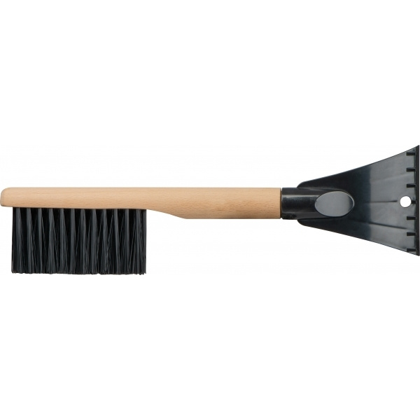 Скребок для льда 2 в 1 со щеткой для снега. Имеет деревянную ручку для удобного захвата даже при низких температурах и петлю для подвешивания на скребке.