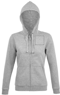SOL'S SPIKE WOMEN. Женская толстовка с капюшоном на молнии, 80% хлопка кольцевого прядения - 20% полиэстера. Подкладка с начесом. Снаружи: 100% хлопок, ФЛИС 280 LSF (ткань с низкой усадкой). Втачные рукава, 2 передних кармана-кенгуру. Скроено и прошито. Капюшон на подкладке с шнурком в тон, манжеты и подол в рубчик 2x2. Воротник-полумесяц с внутренней стороны, проклеенная горловина, молния YKK. OEKO-TEX®. Продается только с принтом.