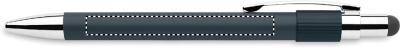 Stylus push ball spinner pen in recycled aluminium. Blue ink.