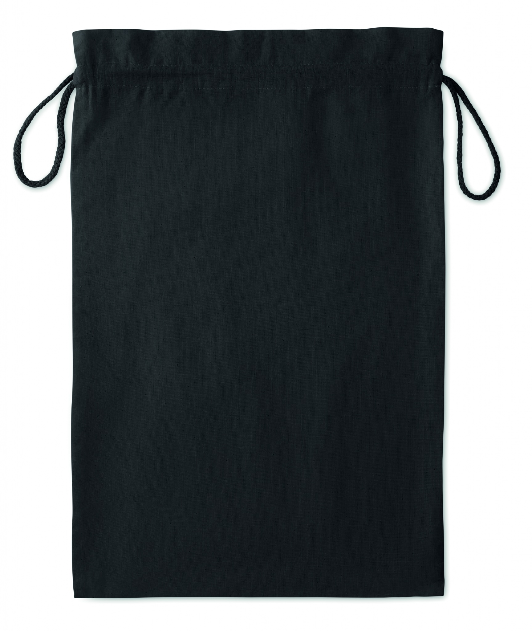 Большой хлопковый подарочный мешок плотностью 105 г/м² с завязками, размером 30 x 47 см, черного цвета, доступен с вашим индивидуальным дизайном на сайте www.logo.ee. Закажите этот и другие подарки и товары с персонализированной печатью онлайн для вашей компании!
