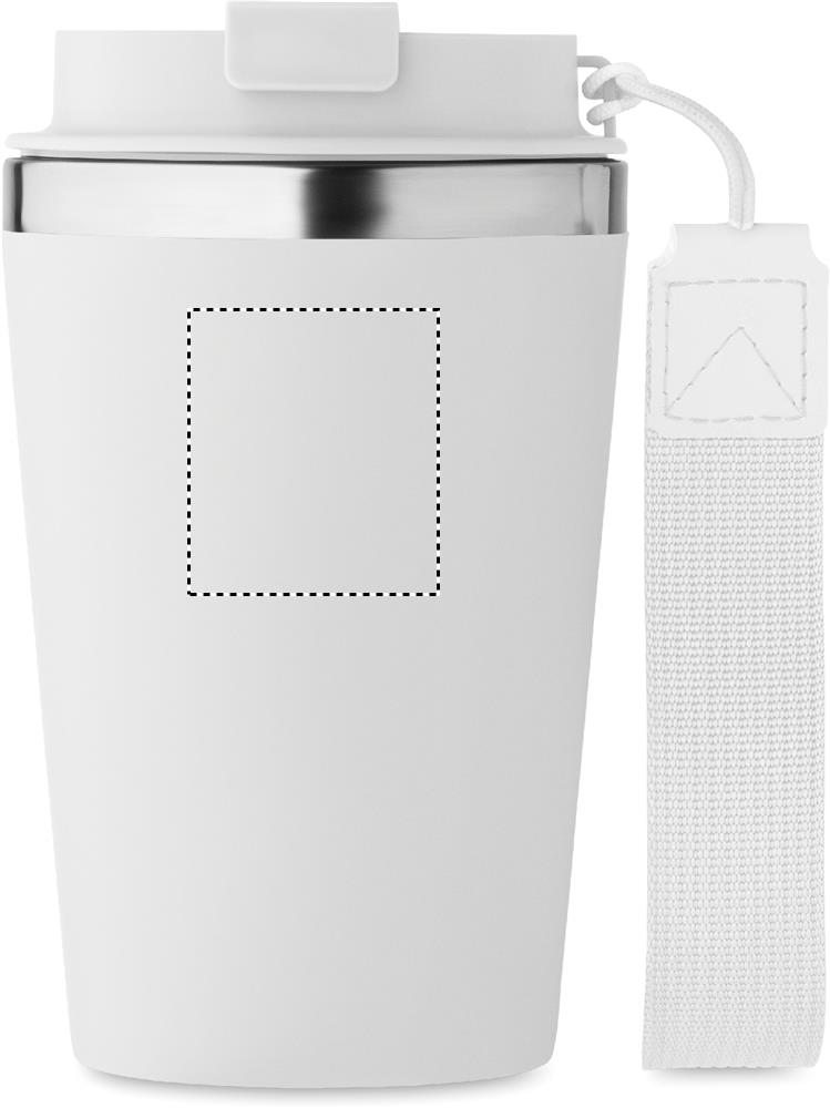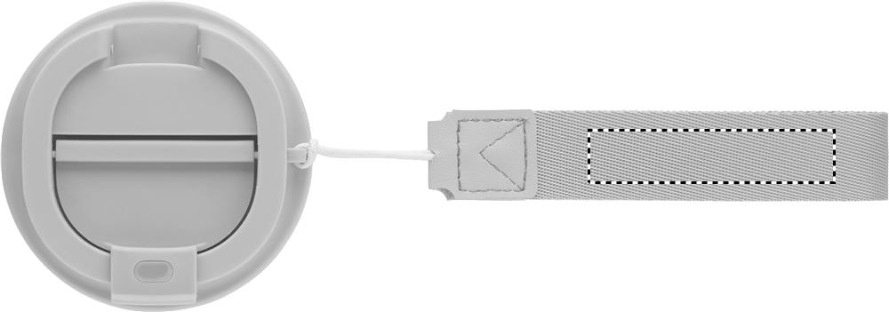 Термокружка с двойными стенками из переработанной нержавеющей стали (90%) и обычной нержавеющей стали (10%) с внешним покрытием из переработанного полипропилена с ремешком для запястья из RPET. Объем: 350 мл. Герметична.