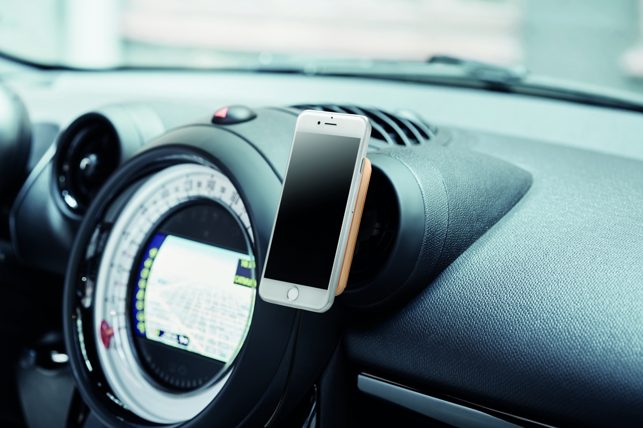 Магнитное беспроводное зарядное устройство из бамбука с креплением для автомобиля. Выход: DC 9V/1.67A (15W) для быстрой зарядки. Совместимо с iPhone® 12 и новее. В комплект входит дополнительное магнитное металлическое кольцо для удержания немагнитных устройств с беспроводной зарядкой.
