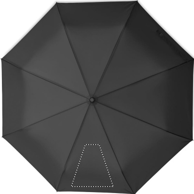 27-дюймовый ветроустойчивый зонт автомат в 3 сложения. Материал 190T эпонж, стальной стержень с черным покрытием. Спицы из стекловолокна. Черная полипропиленовая ручка с кнопкой. В комплекте с чехлом.