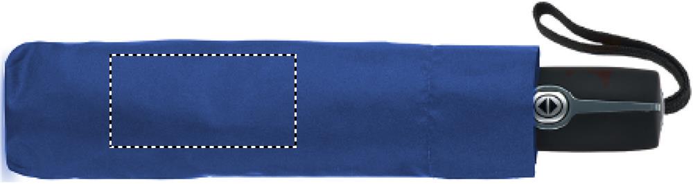 Sektionsparaply, 21 tum med stormfunktion i 190T pongee material med pläterat stålskaft, svarta med 2 sektioner glasfiber och kromade metallspetsar. Svart gummerat handtag med kupning. Viks ihop i tre sektioner. Automatisk stängning och öppning. Inkluderar matchande påse.