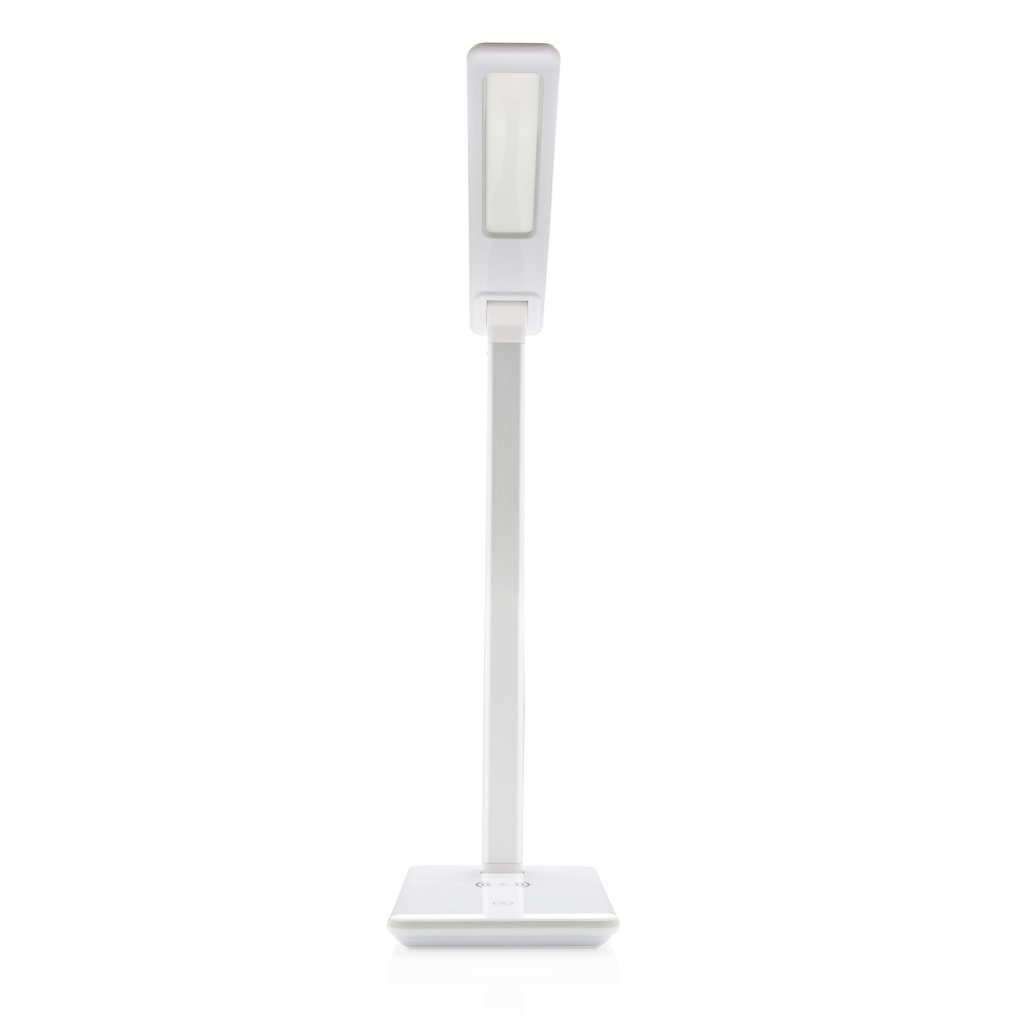 Lampa i ABS med integrerad trådlös laddning för att uppgradera ditt skrivbord. Placera din telefon på lampans fot för att påbörja laddningen. Lampan har även en USB utgång för laddning via kabel. Ljuset tänds via touchknappen på lampan. Brinntid för lampan är upp till 50.000 timmar. 150cm micro-kabel medföljer. Kompatibel med alla QI-aktiverade enheter som senaste generationen Android, iPhone 8 och upp. Input: 5V/2A. Trådlös Output: 5V/1A 5W.