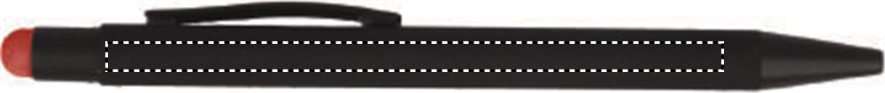 Aluminium penna med gummerad lackad yta och tryck funktion. Skaftet har under den svarta färgen motsvarande färg som touch toppen vilket gör att märkningen vid lasergravering får motsvarande färg. Blått bläck i patronen.