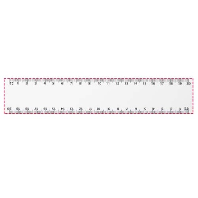 Flexibel och lätt plastlinjal tillverkad i syntetiskt papper på 450 g/m2 med markeringar både i tum och centimeter. Syntetiskt papper 450 g/m². Observera att linjalmarkeringarna skrivs ut tillsammans med tryck, linjaler som beställs utan tryck kommer inte att ha markeringar.