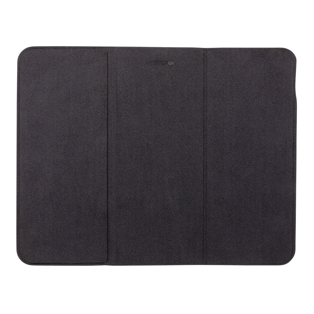 Platt och hopvikbar musmatta med 10W trådlös laddning. Laddaren i PU kan användas både platt och som ett ställ. Hela musmattan kan vikas ihop vilket gör den enkel att ta med. 10W trådlös laddning är kompatibel med alla QI-aktiverade enheter som senaste generationen Android, iPhone 8 och upp. Type-C input 9V/2A; trådlös output 9V/1.1A; PVC-fri laddningskabel i TPE medföljer. 19 st högkvalitativa N52H värmeresistanta integrerade magneter. 120 cm PVC-fri type C kabel i TPE medföljer. Registrerad design.