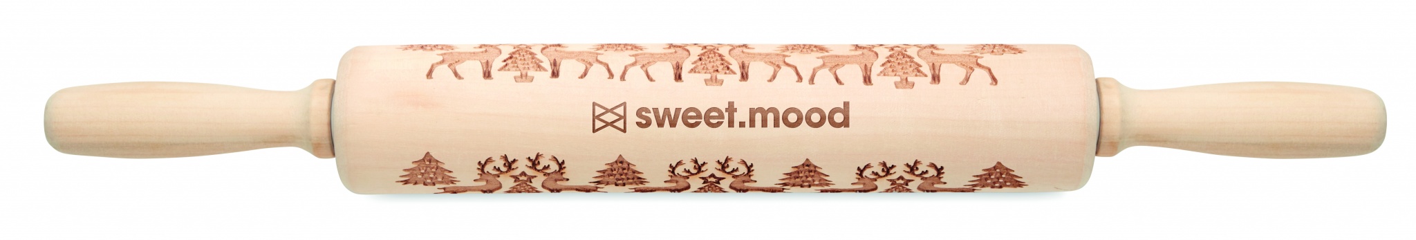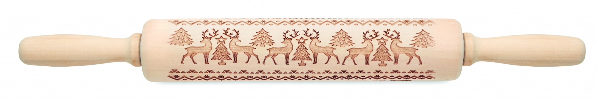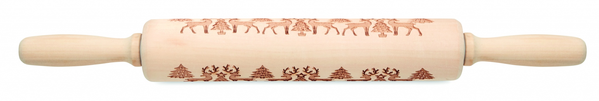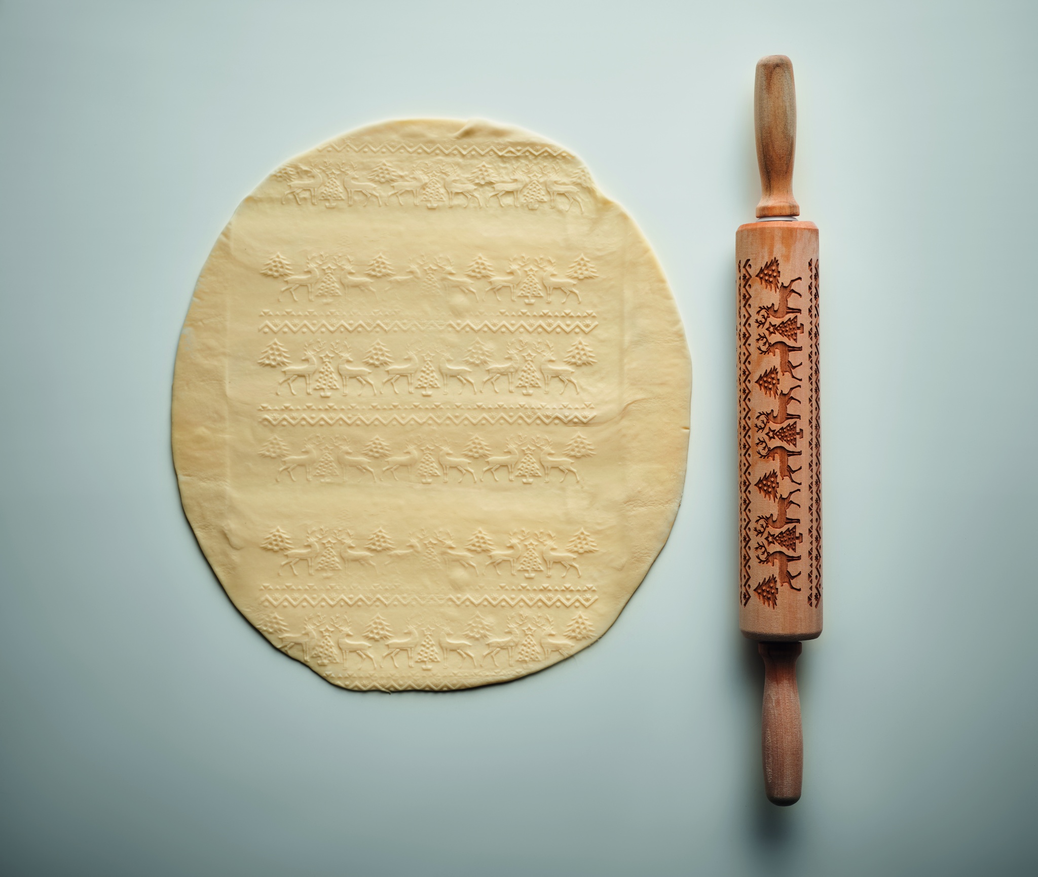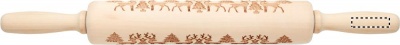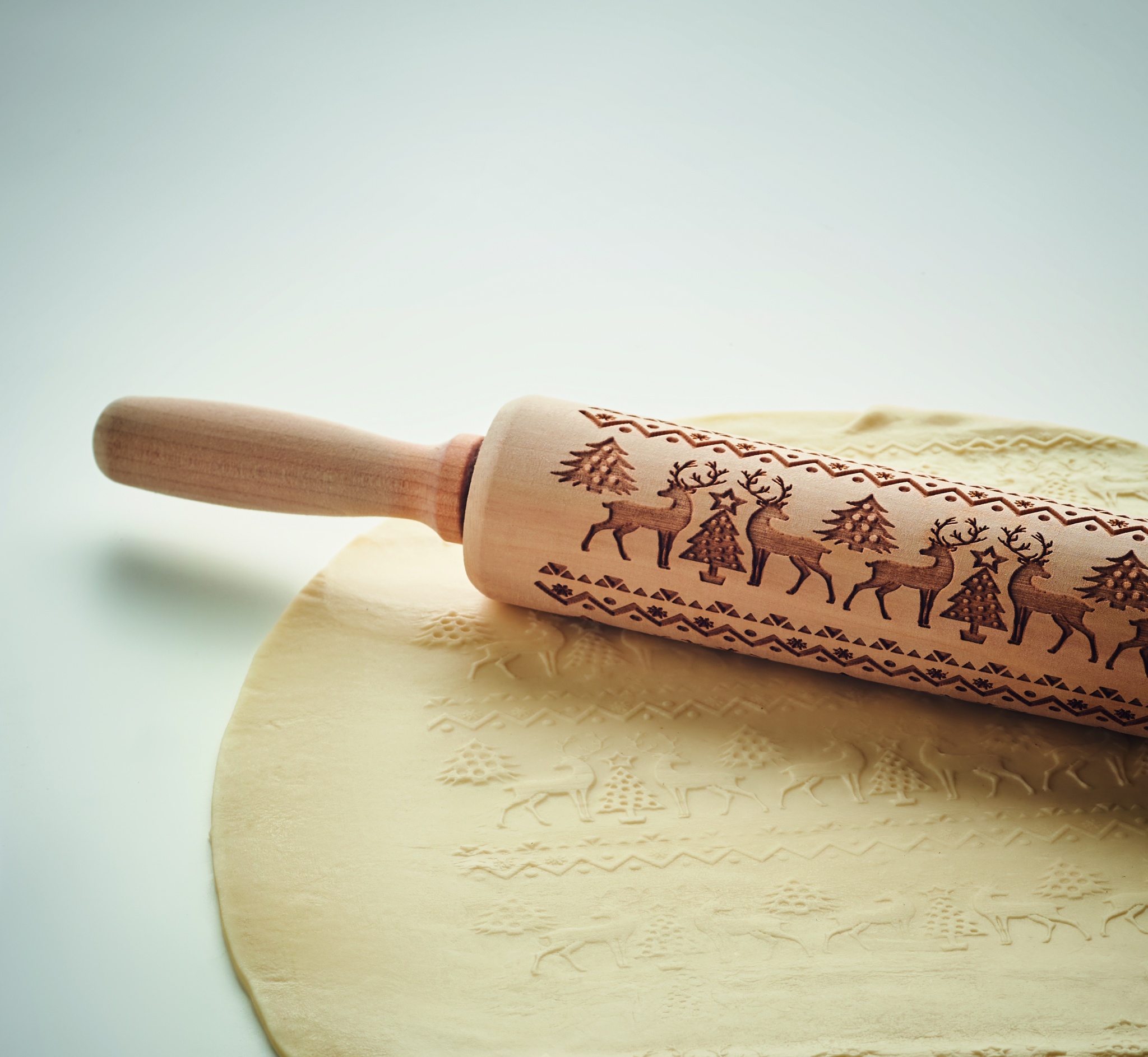 Bak kavel i trä med präglat julmönster.
