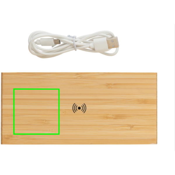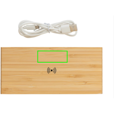 Logotrade reklamprodukter bild: Bambu väckarklocka med 5W trådlös laddning