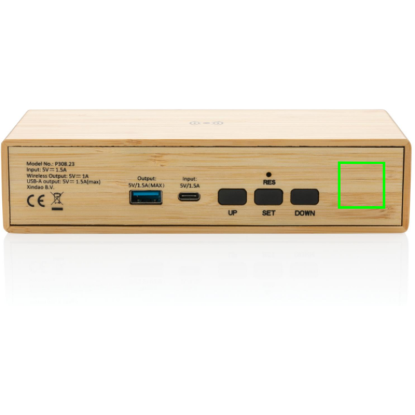 Logotrade kampanjprodukter bild: Bambu väckarklocka med 5W trådlös laddning