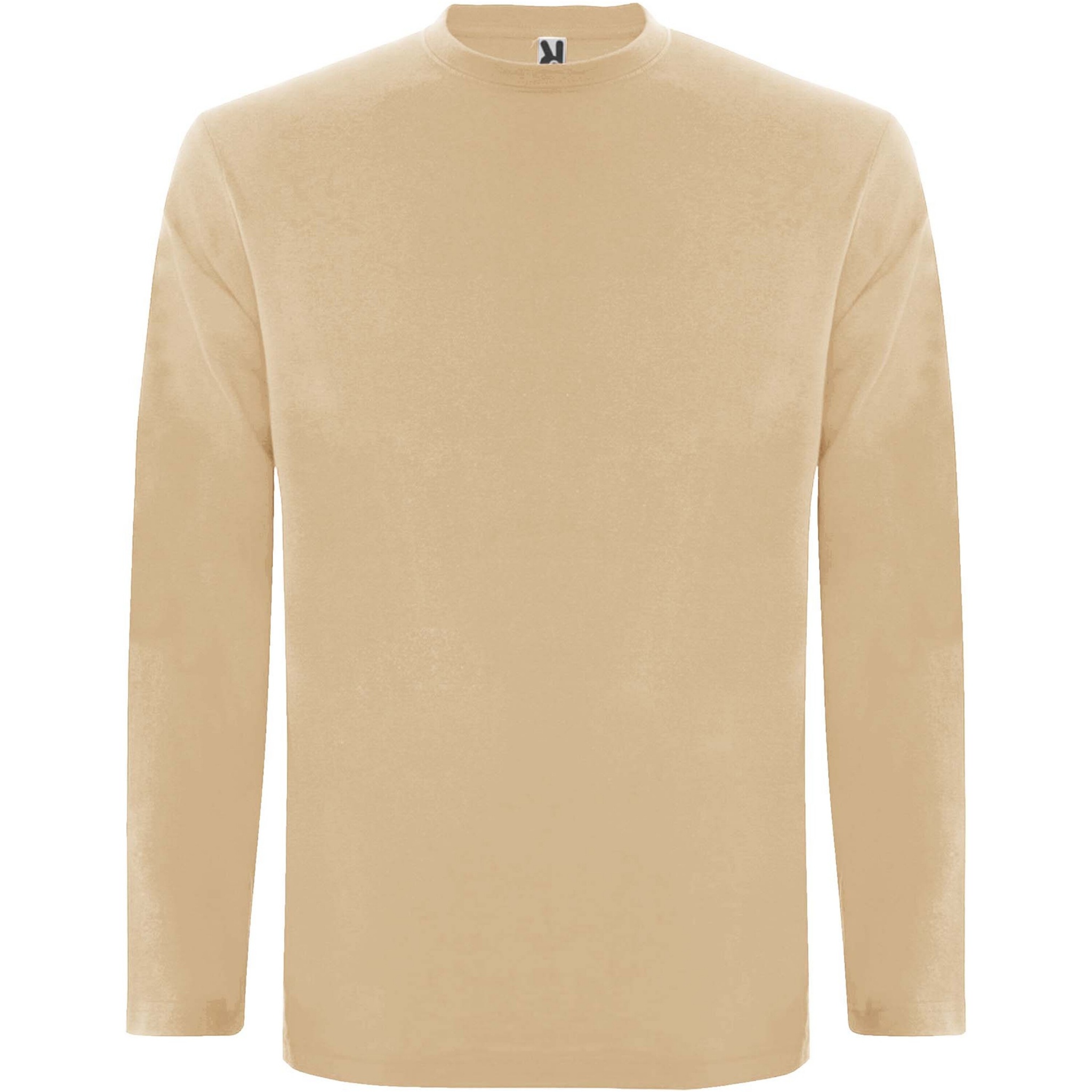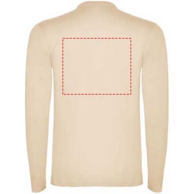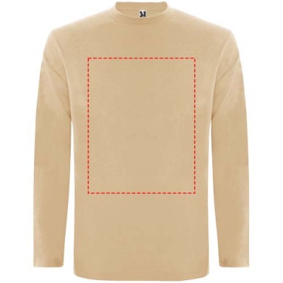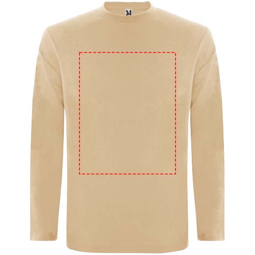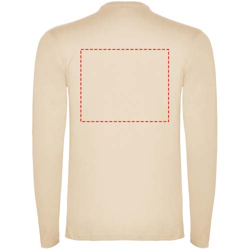 Tubstickad långärmad T-shirt med 4-lagers rundhals. Förstärkta dolda sömmar i krage och axlar. Inga muddar. Borttagbar etikett. Tubstickad design i vuxenstorlekar och sidsömmar i barnstorlekar. Modellen är 185 cm och bär storlek L.
