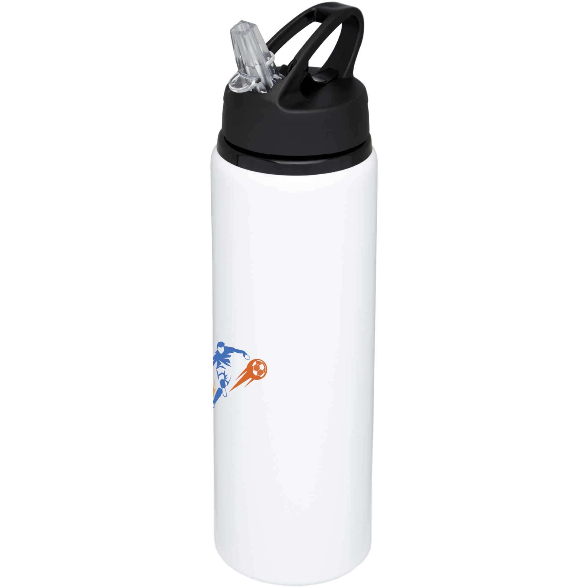 Aluminiumflaska med enkelvägg med skruva-på lock med en uppfällbar pip för att dricka. Locket har ett handtag för att lätt kunna tas med. BPA-fri. Volymkapacitet 800 ml.