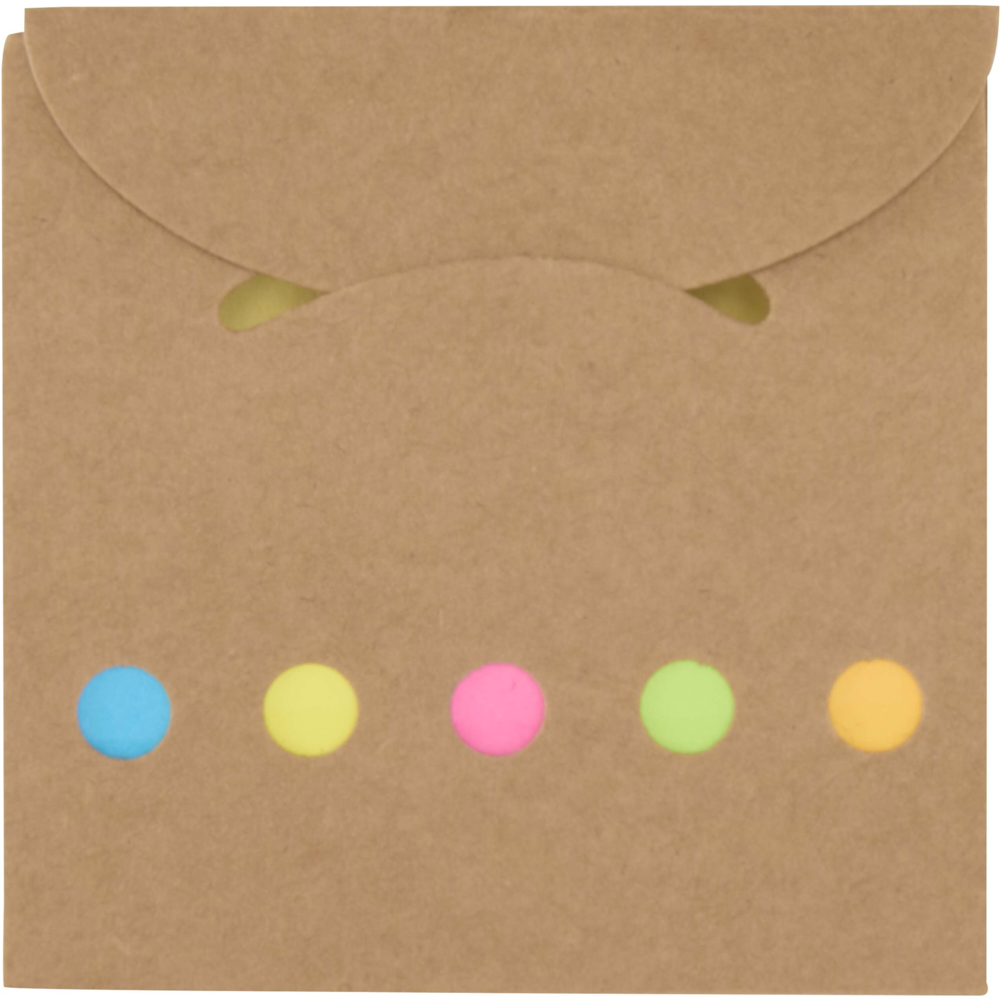 Det behändiga häftet Freijo har 125 små (5 x 1,5 cm) klisterlappar i 5 olika färger och 25 stora (7,5 x 7,5 cm) gula klisterlappar.