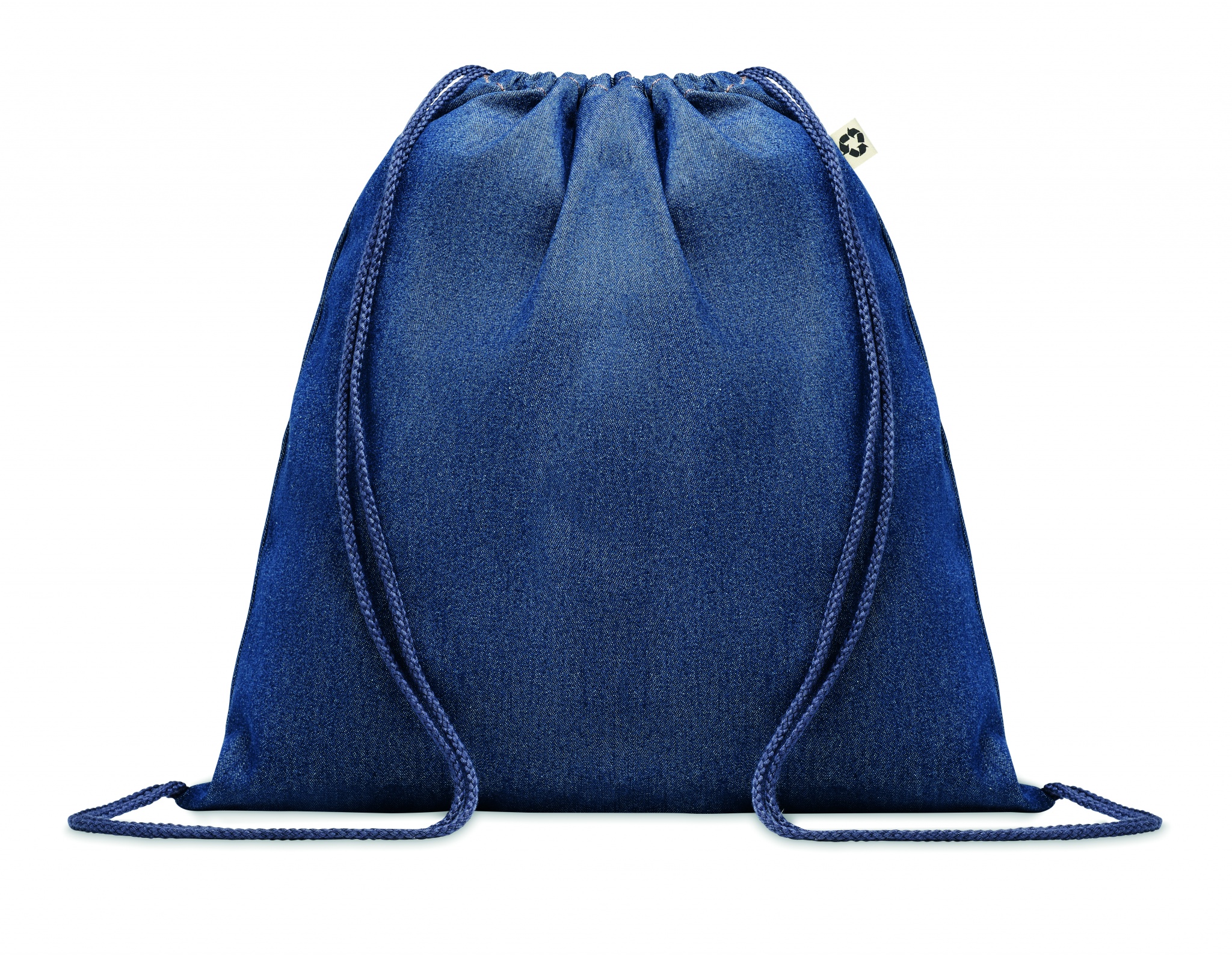 Gymnastikpåse med dragsko i 50 % återvunnen bomullsfärgad denim och 50 % bomull. Kvalité: 250gr/m².