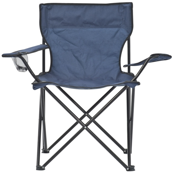 Hopfällbar fåtölj med robust stålram, robust polyesteröverdrag av hög kvalitet, integrerad dryckeshållare, bärväska och lastkapacitet upp till 100 KG. Vi trycker din logotyp på bärväskan.