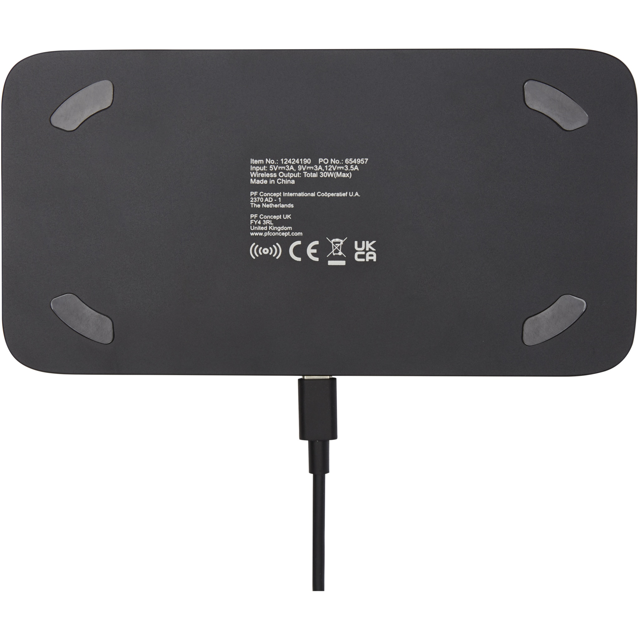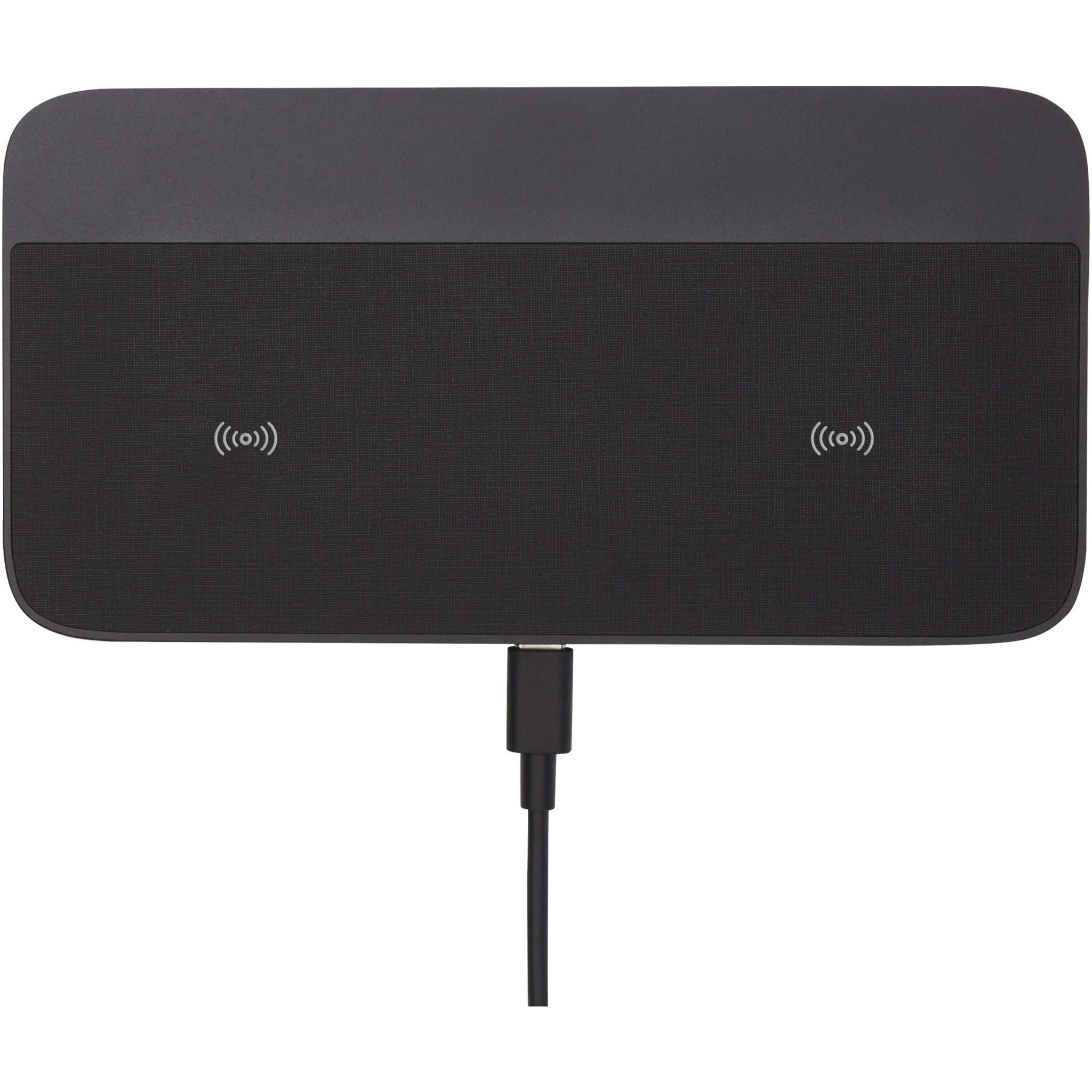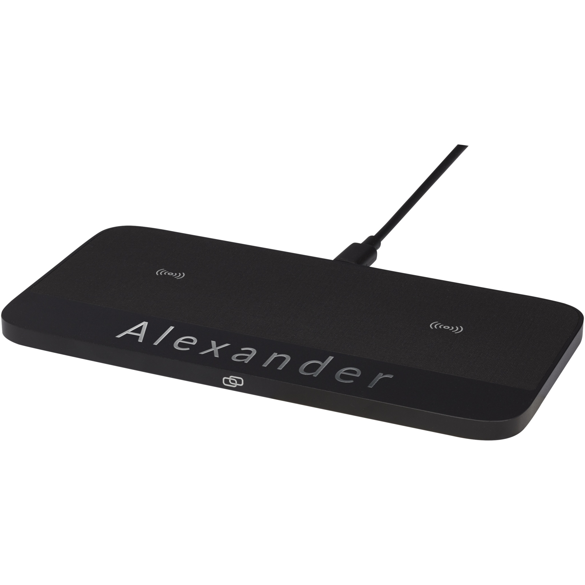 Hybrid premium 15 W trådlös laddningsplatta är en tillgång för alla arbetsplatser. Den får lätt plats i en laptopväska tack vare sin ultratunna design. Tillverkad av slitstarkt aluminiumhölje kombinerat med en laddningsplatta av anti-slip TPU-läder. Med upp till 15 W trådlös laddningsutgång kan två enheter snabbt laddas fulla samtidigt. Kompatibel med alla Qi-enheter (iPhone 8 eller senare och Android-enheter som stöder trådlös laddning). Den har inbyggd FOD (detektering av främmande föremål) för att identifiera oönskade föremål och säkerställa en smidig laddningsprocess. Levereras i en förstklassig kraftpapperslåda med ett färgstarkt klistermärke. En typ-C-laddningssladd medföljer.