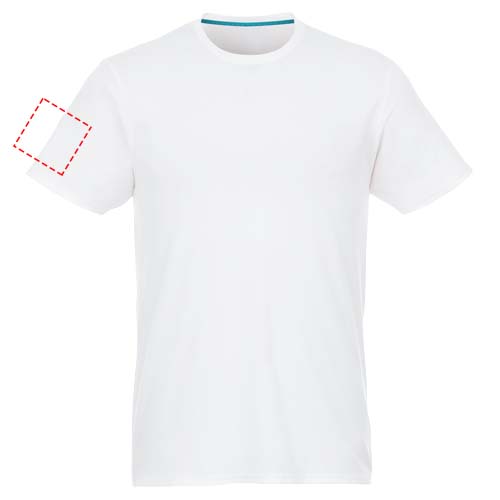 Jade kortärmad T-shirt för män med återvunnet material. Hållbara PR-plagg. Crewneck. Sidsömmar. Band mellan axlarna. Dubbelsömsdetaljer. Enkel jersey med 100 % återvunnen polyester. 160 g/m².
