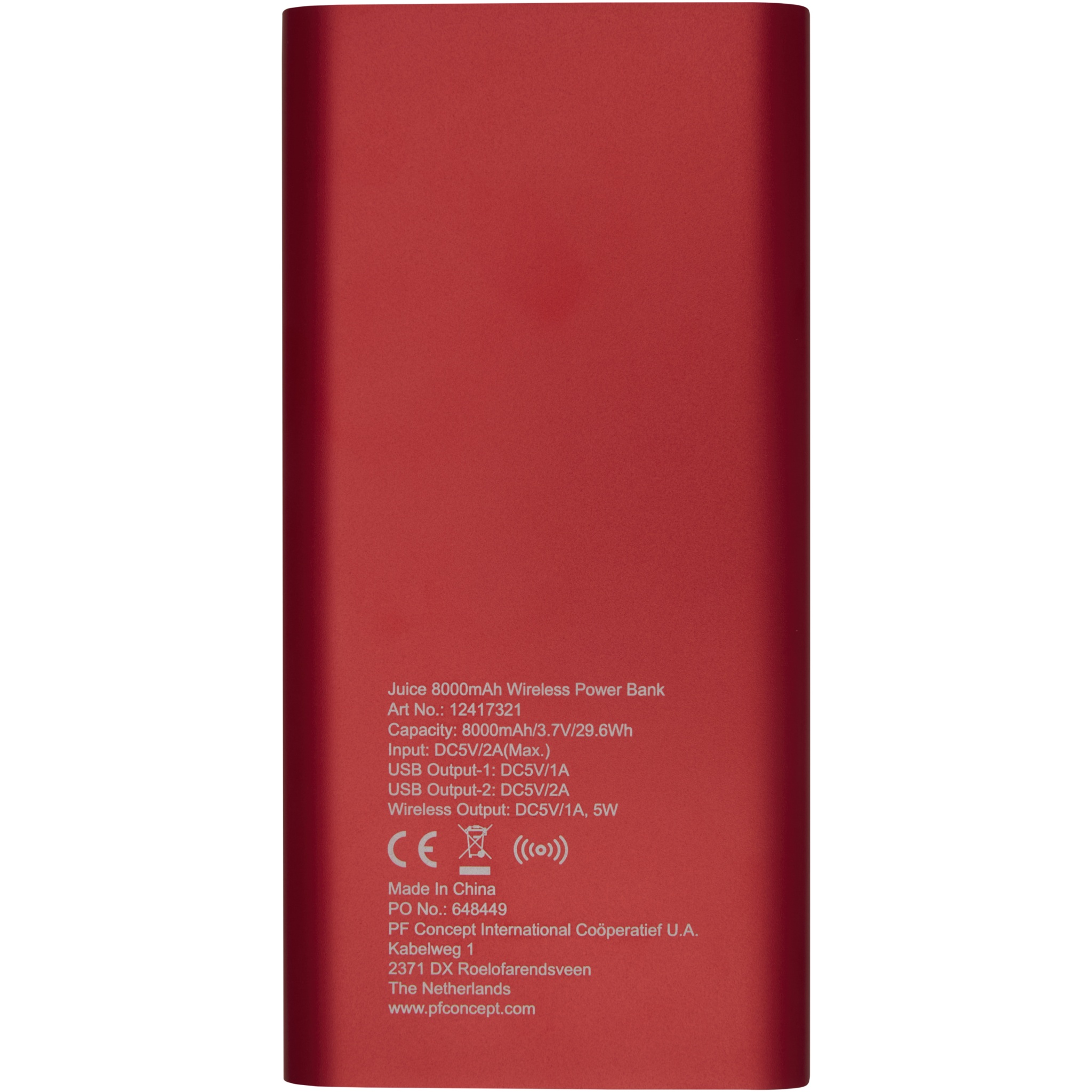 Juice 8 000 mAh trådlös powerbank, Röd