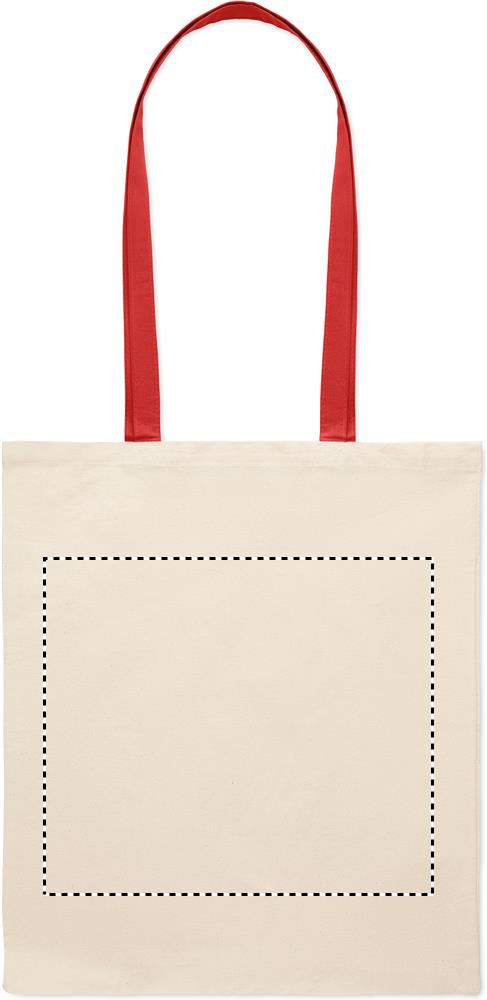 Naturfäragd tygkasse i bomull med färgade långa handtag. Mått: 38x42cm, 140gr/m².