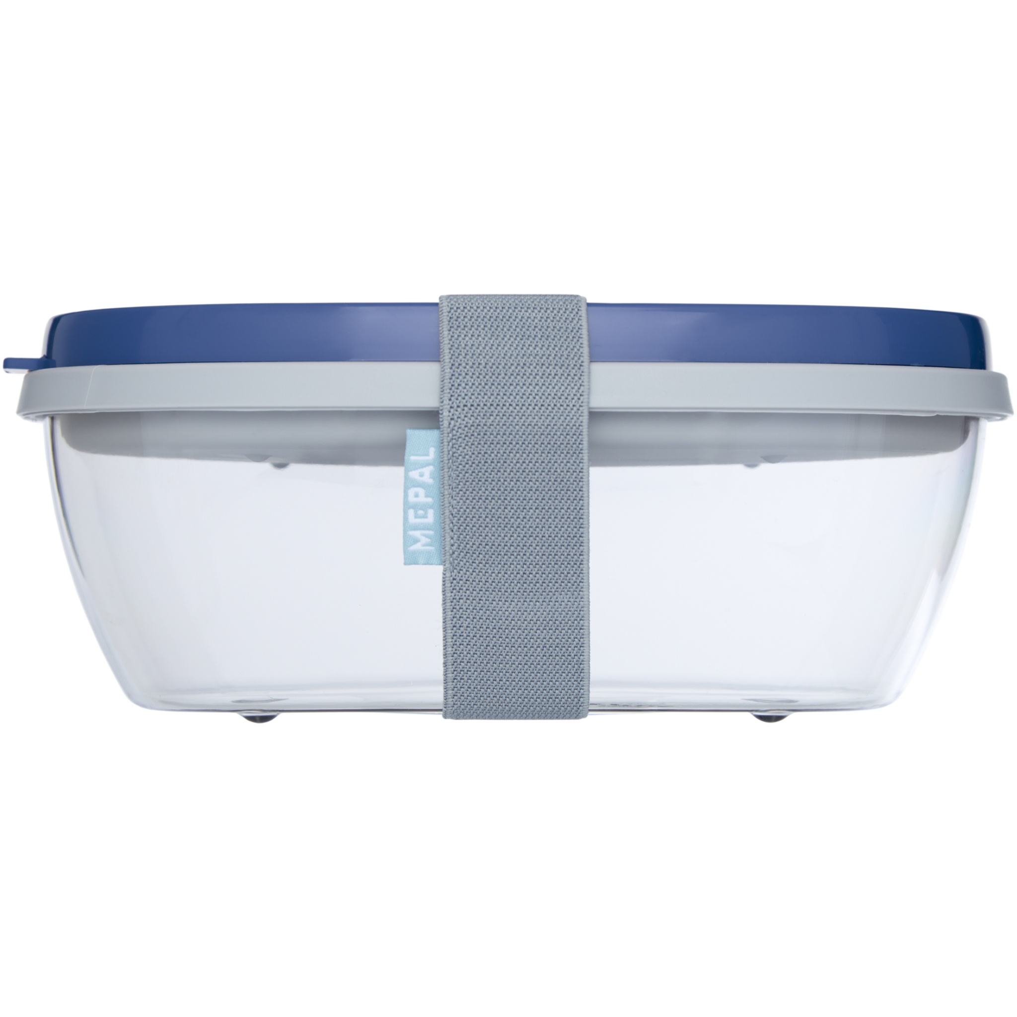 Salladslåda med stort 1 300 ml genomskinligt fack som är tillräckligt stor för att blanda salladen vid lunchdags. Det övre facket rymmer bröd eller bestick. Inkluderar ett litet fack för dressing eller nötter. Går inte sönder och är maskindisksäker. Levereras med en elastisk bandstänging. BPA-fri. 2 års garanti från Mepal.