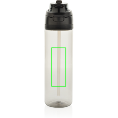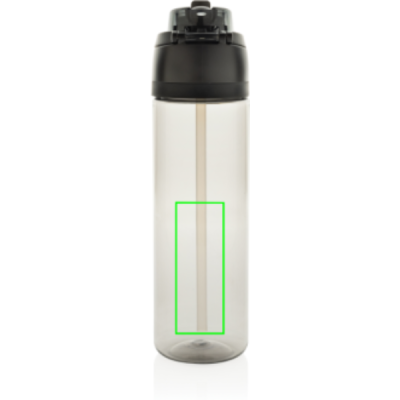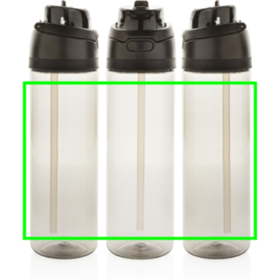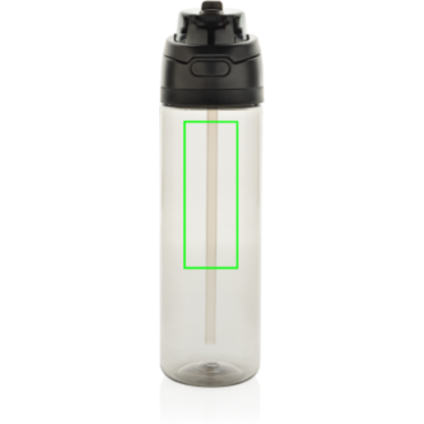 Vi presenterar den lätta RPET-vattenflaskan Omni Sip. Den här innovativa flaskan låter dig välja hur du dricker. Ta en klunk genom det inbyggda sugröret medan du håller den upprätt, eller luta den bakåt för att njuta av en klunk från den breda öppningen. Den är redo att användas när som helst, tryck bara på knappen för att fälla upp locket och tryck sedan ner det igen för att låsa det säkert och hålla smuts och bakterier borta. Innehåller 800 ml och är tillverkad av RCS-certifierad återvunnen PET. Omni Sip är helt läckagesäker. Förpackad i FSC-presentförpackning. Totalt återvunnet innehåll: 47% baserat på artikelns totala vikt.