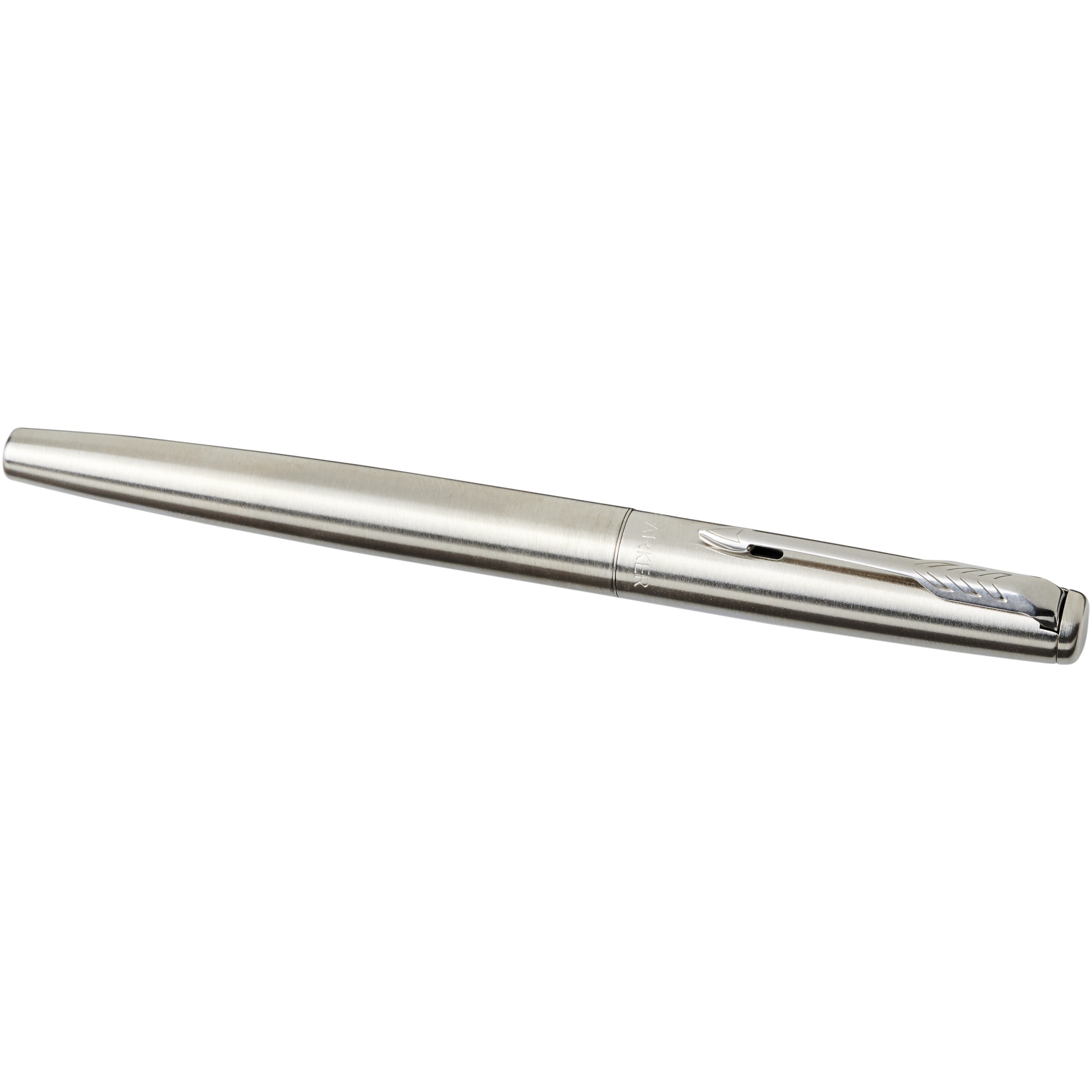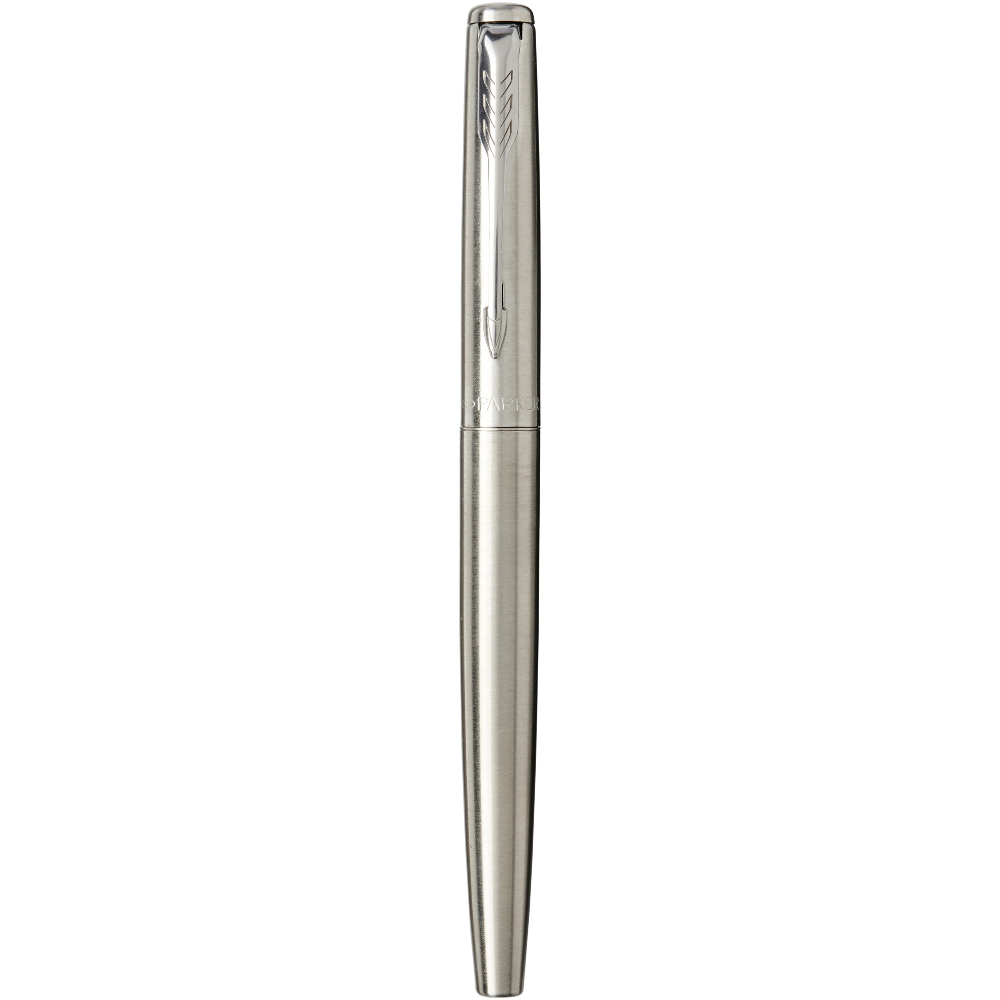 Jotter reservoarpenna. Jotter reservoarpenna är en modern tolkning av den ursprungliga ikonen. Med en spets i rostfritt stål, förkromad pennkropp, kork i polerat rostfritt stål och pilklämman. Den levereras i en Parker presentförpackning. Metall.